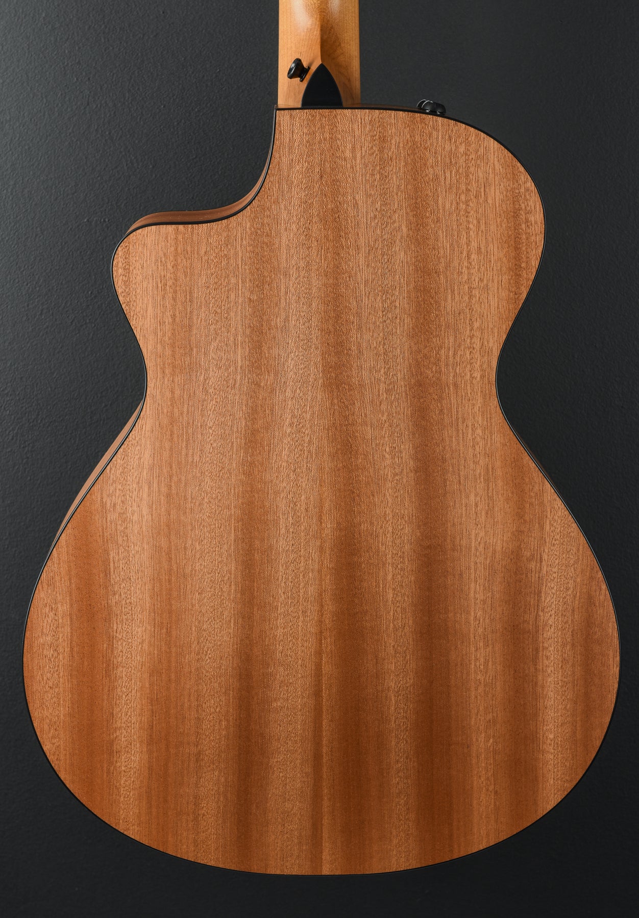 Very Good Condition, Natural, Matte Finish, Grand Concert Body Shape with the Venetian Cutaway, Sitka Spruce Top, Three Ring Plastic Rosette, Forward Shifted Pattern Bracing, Layered Sapele Back and Sides, Black Binding, Eucalyptus Fingerboard with Italian Acrylic 4mm Dot Inlays on a Maple Neck, 24 7/8th” Scale Length, 1 11/16th” Nut Width, Comes with the Expression 2 Pickup System and a Gig Bag.