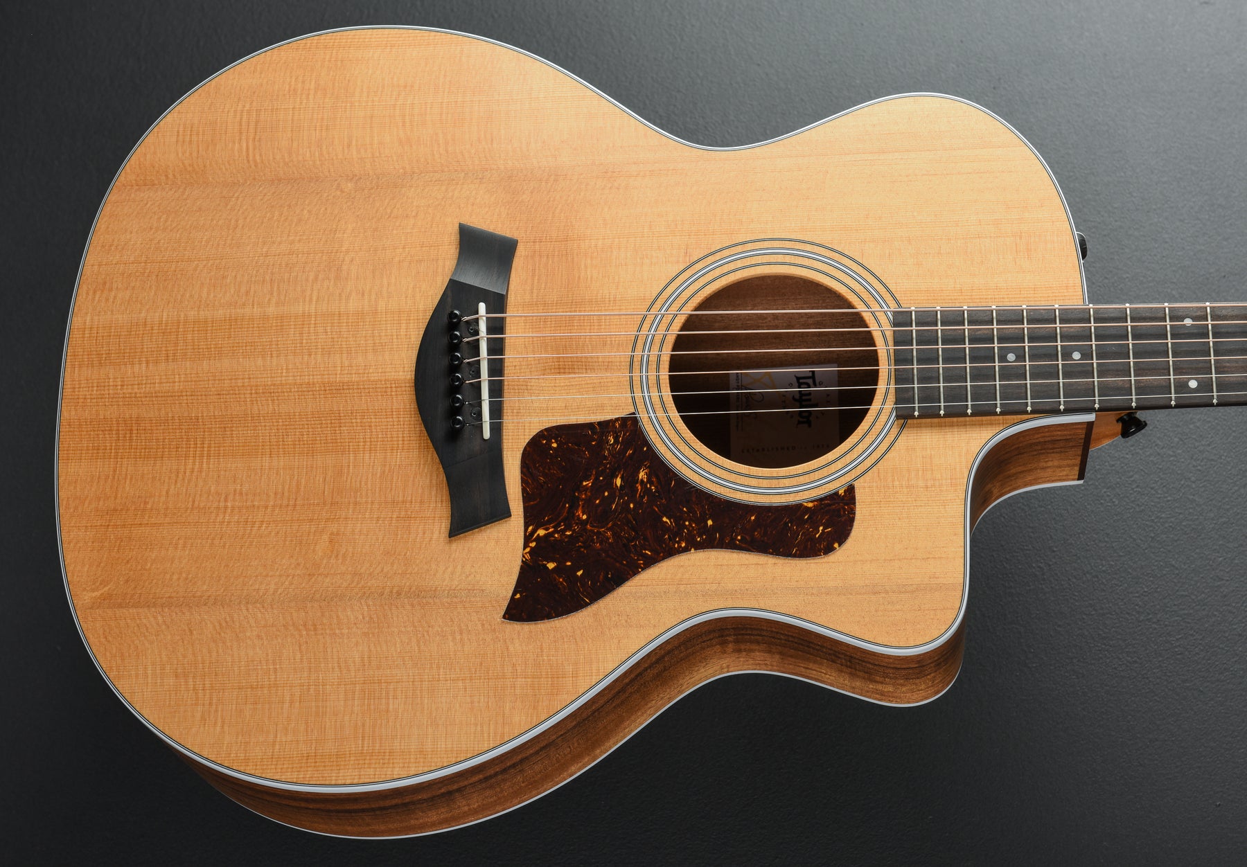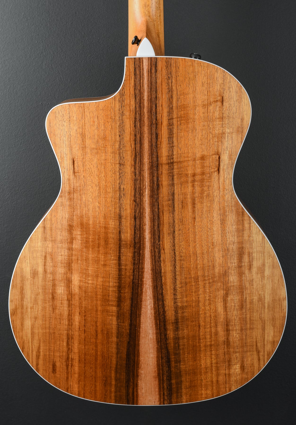 Natural, Matte finish, Grand Auditorium body shape with the venetian cutaway, Torrefied Spruce top, Three Ring Plastic Rosette, C-Class Bracing with Relief Rout, Layered Koa back and sides, White binding, West African Crelicam Ebony fingerboard with the faux pearl 4mm dot inlays on a Tropical Mahogany neck, 25.5” scale length, 1 11/16th” nut width, Cast/sealed tuners, The neck thickness is .83″ at the first and .87″ at the 9th frets, With the Expression 2 pickup system and gig bag, Excellent