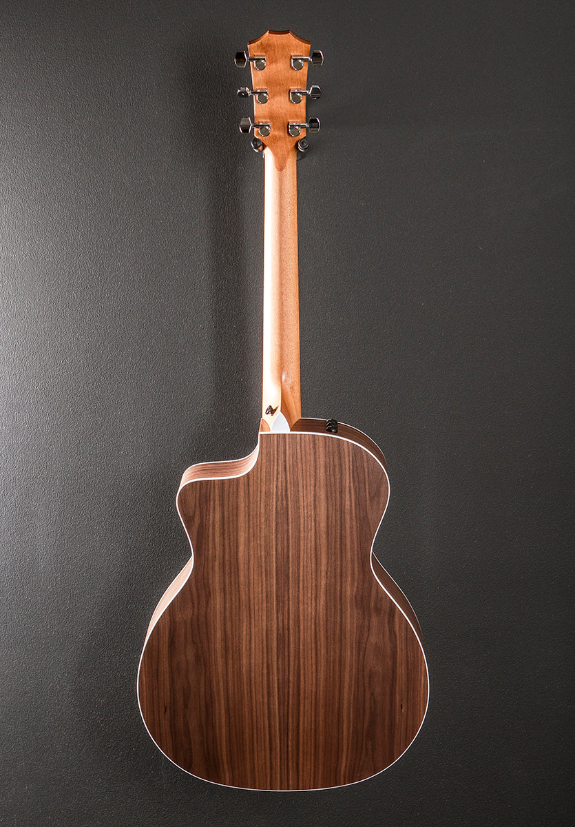 Natural, Matte finish, Grand Auditorium body shape with the venetian cutaway, Torrefied Spruce top, Three Ring Plastic Rosette, C-Class bracing, Layered Walnut back and sides, White binding, West African Crelicam Ebony fingerboard with the faux pearl 4mm dot inlays on a Tropical Mahogany neck, 25.5” scale length, 1 11/16th” nut width, Cast/sealed tuners, The neck thickness is .83″ at the first and .87″ at the 9th frets, With the Expression 2 pickup system and gig bag, Excellent