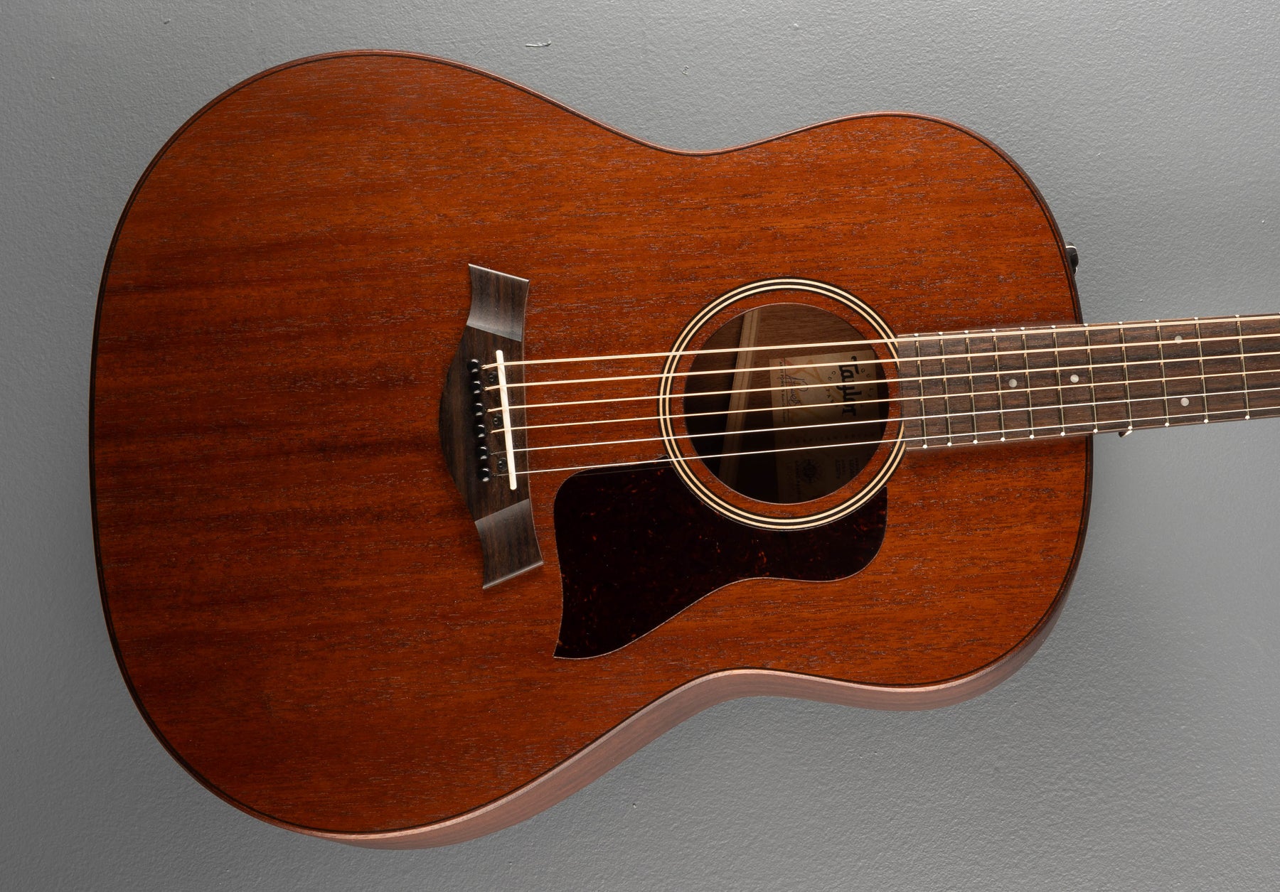 Very Good condition, Urban Sienna, Grand Pacific body shape, Tropical Mahogany top, Single Ring Black Fiber/Maple/Black Fiber Rosette, V-Class bracing with Relief Rout, Sapele back and sides, Chamfered body edges with the Black top purfling, Eucalyptus fingerboard with the Italian Acrylic 4mm Dot inlays on a Tropical Mahogany neck, 25.5” scale length, 1 3/4” nut width, Neck thickness measures .86" at the 1st fret and .92" at the 9th, With the Expression 2 pickup system, with Aerocase hard bag.