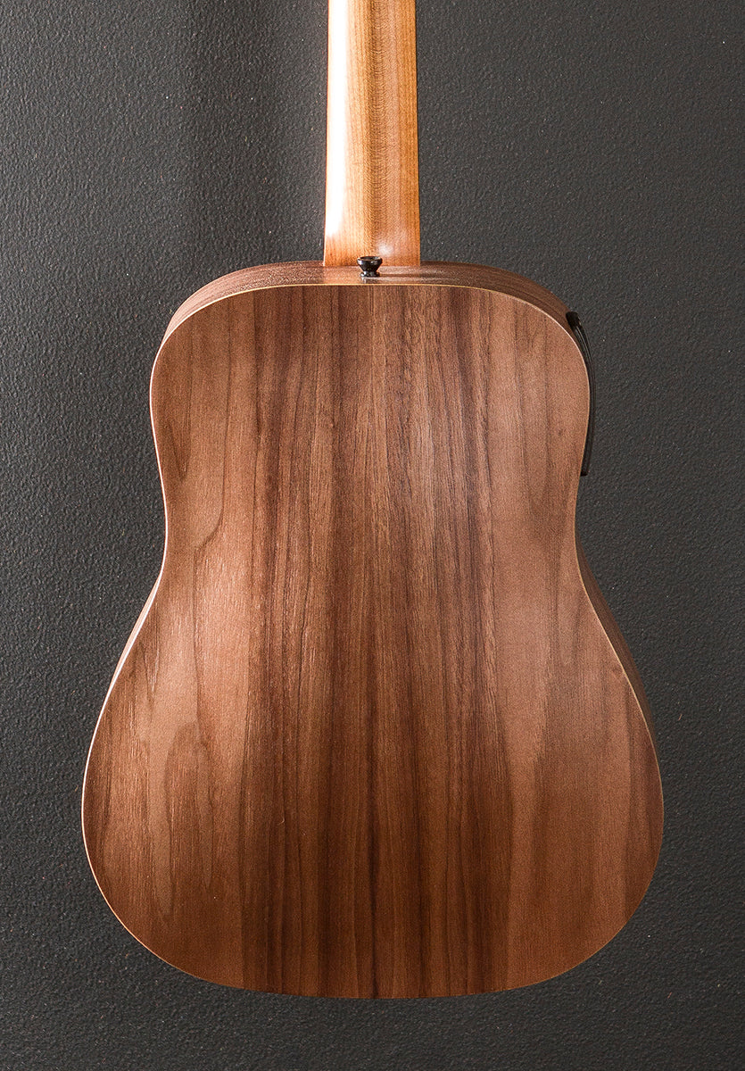 Natural, Matte finish, 3/4 Dreadnought body shape, Sitka Spruce top, Single Ring Plastic Rosette, X bracing, Layered Walnut back and sides, Ebony fingerboard with the Italian Acrylic 4mm dot inlays on a Hard Rock Maple neck, 22 3/4″ scale length, 1 11/16th” nut width, Cast/sealed tuners, The neck thickness is .84″ at the first and .88″ at the 9th frets, With the ES-B pickup system and gig bag, Excellent