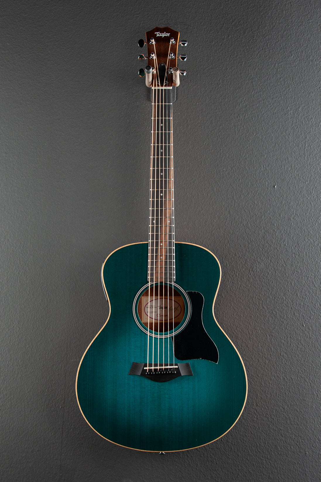 Blue Burst, Matte finish, Miniature Grand Symphony body shape, Sitka Spruce top, Three Ring Rosette, X bracing, Layered Sapele back and sides, West African Crelicam Ebony fingerboard with the faux pearl 4mm dot inlays on a Neo-Tropical Mahogany neck, 23.5″ scale length, 1 11/16th” nut width, Cast/sealed tuners, The neck thickness is .82″ at the first and .87″ at the 9th frets, With the ES-B pickup system and gig bag, Excellent