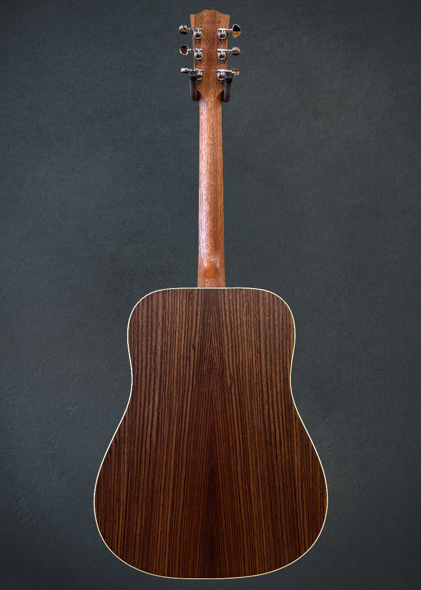 Satin Rosewood Burst, Square Shoulder Hummingbird body shape, Satin nitrocellulose lacquer finish, Sitka Spruce top, Traditional hand scalloped X bracing, Multi-ply top and single-ply back binding, Rosewood back and sides, Advanced response shaped Utile neck, 16” radius Rosewood fingerboard with the Mother of Pearl Parallelogram inlays and standard frets, 24.75″ scale length, 1.72″ nut width, Grover Rotomatic tuners, With the L.R. Baggs Element pickup system and hardshell case