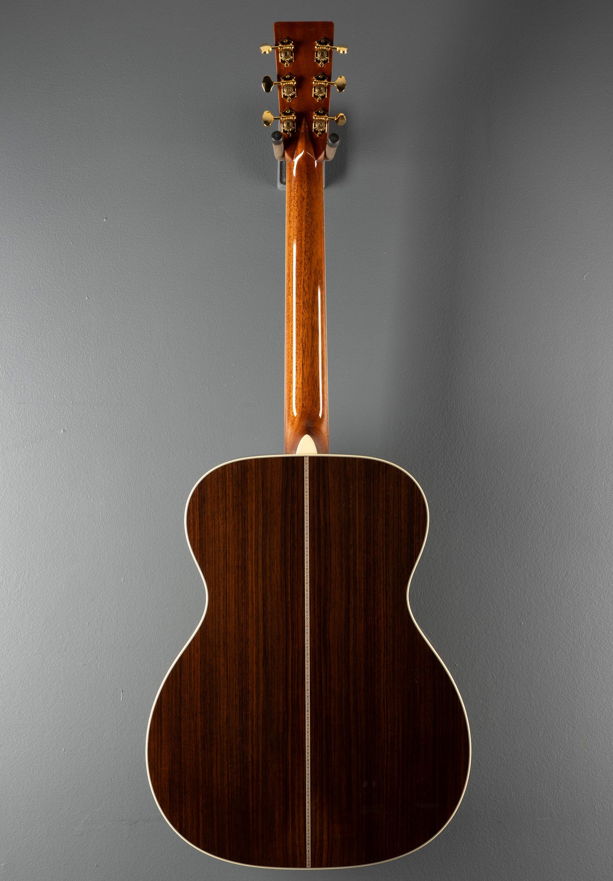 Natural, Gloss top/body and neck finish, 000-14 Fret body shape, Solid Spruce top, Abalone with multi-stripe Rosette, Golden Era scalloped forward shifted X bracing, Solid East Indian Rosewood back and sides, Antique White binding with the Abalone top w/multi-stripe top/back inlay, Style 45 with black stripe back purfling, Golden Era modified low oval w/high performance taper shaped Mahogany neck, Bound Ebony fingerboard with the Abalone Style 45 Snowflake position markers, 25.4” scale length, 1 3/4” nut width, Grover open gear tuners, Neck Thickness measures .83" at the 1st fret and .90" at the 9th, With hardshell case.