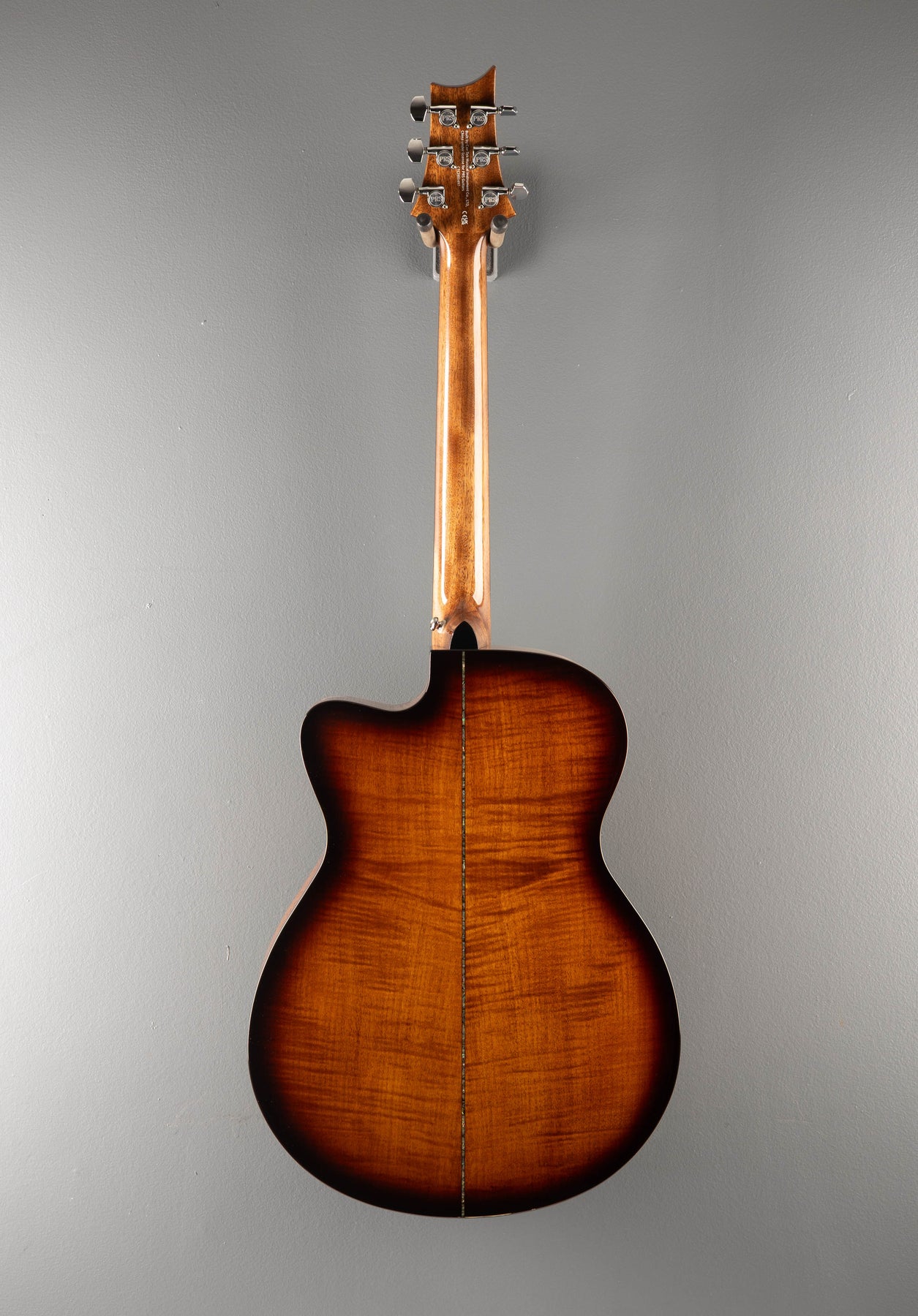Very Good Condition, Natural w/Black Gold Burst, Angelus cutaway body shape, Solid Sitka Spruce top, PRS Hybrid “X”/Classical bracing pattern, Abalone with Black/White Rosette, Flame Maple back and sides, Black/White binding with the Abalone top purfling, 11.81″ radius Ebony fingerboard with Bird inlays on a Wide/Fat shaped Mahogany neck, 25.3″ scale length, 1 11/16th” wide bone nut, With the factory Fishman GT1 pickup system and hardshell case.