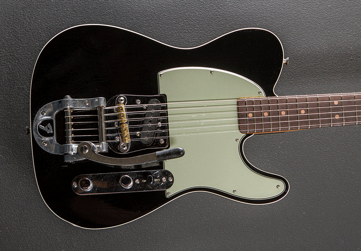 Black, Light aged nitrocellulose lacquer finish, Double bound Alder body, 1960's oval C shaped Maple neck with a 7.25" to 9.5” compound radius Rosewood fingerboard and medium vintage frets, 25.5” scale length, 1 5/8th nut width, Handwound Loaded '51 Nocaster bridge pickup with the Esquire style switching/wiring, RSD adjustable bridge with the two compensated brass saddles, Bigsby B5 vibrato and Fender vintage style tuners, The neck thickness is .80″ at the first and .92″ at the 12th frets, 8.6 pounds, With hardshell case