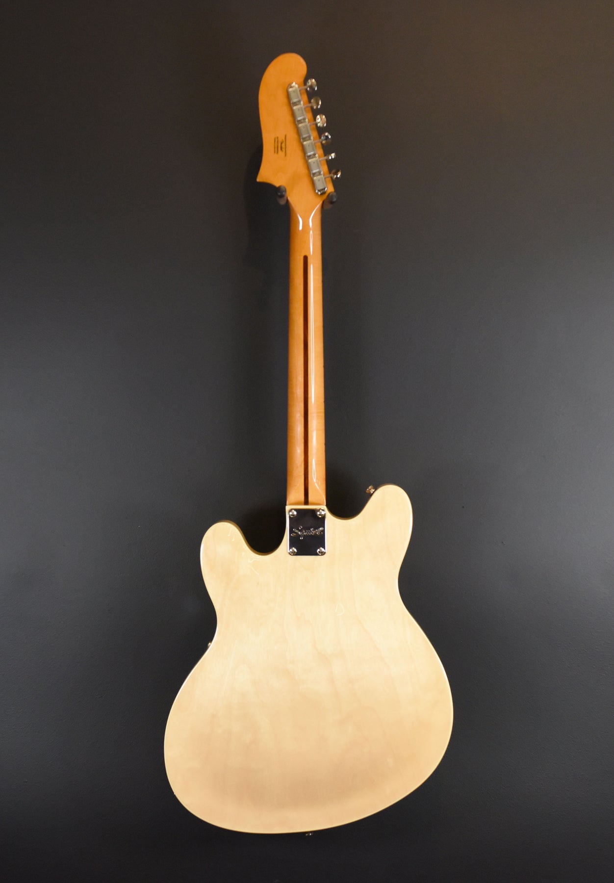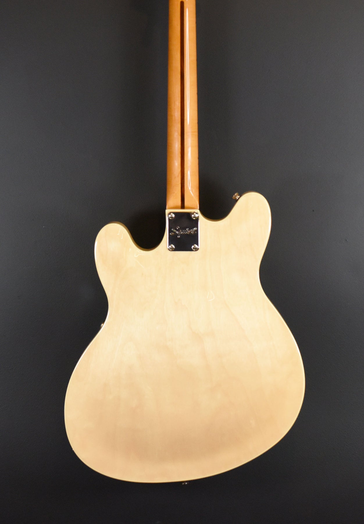 Natural, Crafted in Indonesia, Gloss polyurethane finish, Semi-hollow laminated Maple body with the centerblock, C shaped Maple neck with a 9.5" radius Maple fingerboard and narrow tall frets, 25.5" scale length, 1 11/16th" nut width, Fender designed Wide Range humbucking bridge and neck pickups, 3-way toggle switching with the volume and tone controls for each pickup, Tune-o-matic style bridge and stop tailpiece. Neck depth: 1st fret .82" - 12th fret .90" 7.2 pounds.