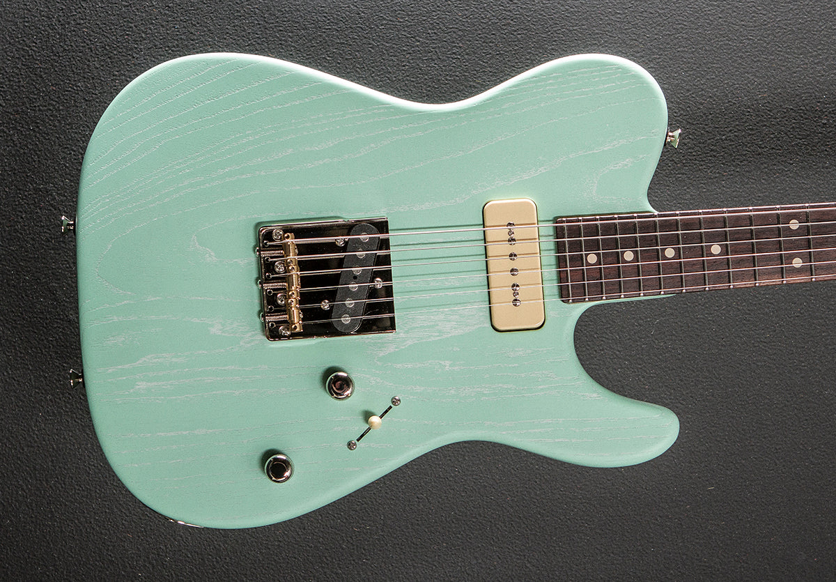 Satin Grain Surf Green with White, Serial number 11-26-25P, Swamp Ash body, Even taper +.030 (.840" to .910") shaped Chocolate Maple neck with a 12” to 14" compound radius Rosewood fingerboard and stainless steel medium jumbo frets, 25.5” scale length, 1 11/16th” nut width, TF3 and PQ-V1 pickups, 5-way for two pickup switching, Traditional string thru body bridge with the three compensated brass barrel saddles, Locking tuners, 6.0 pounds, With the Anderson gig bag