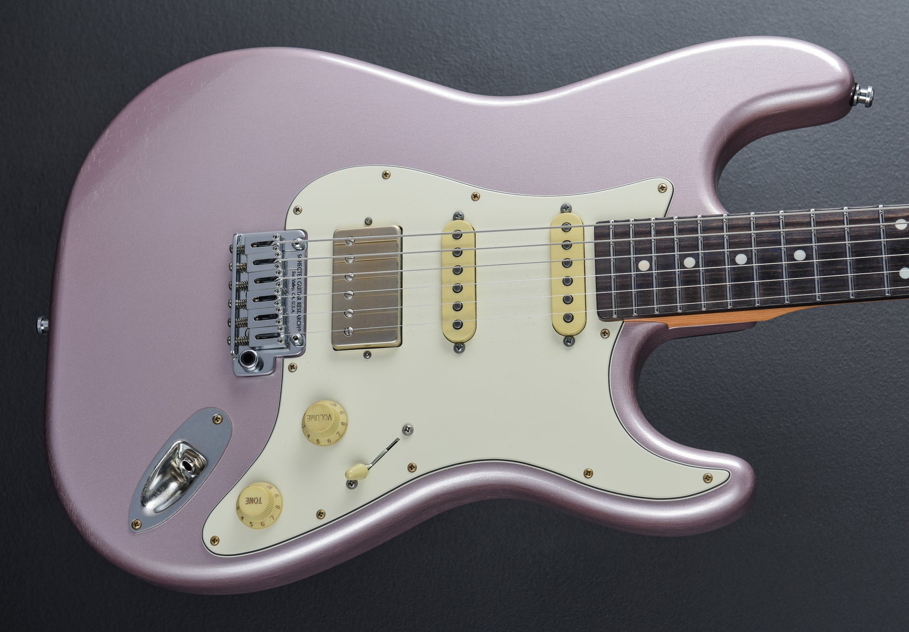 Excellent Condition, Made in USA, Burgundy Mist Aged Nitro Finish, Alder Body, Roasted Maple Neck, Macassar Ebony Fingerboard, Custom "C" Shape Neck, 25.5" Scale Length, 22 Jescar Premium German Stainless Steel Frets, 12" Fingerboard Radius, 1.67" Nut Width, Pasadena Plus Humbucker Bridge, Pasadena VS-1 Single Coil Middle and Neck, Gotoh Magnum Lock-Trad Tuners, Schecter Fulcrum Tremolo, Aged Chrome Hardware, 7.35lbs., Comes with the Original Hardshell Case and the Certificate of Authenticity.