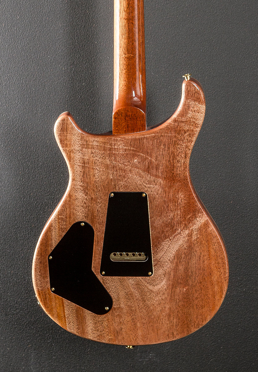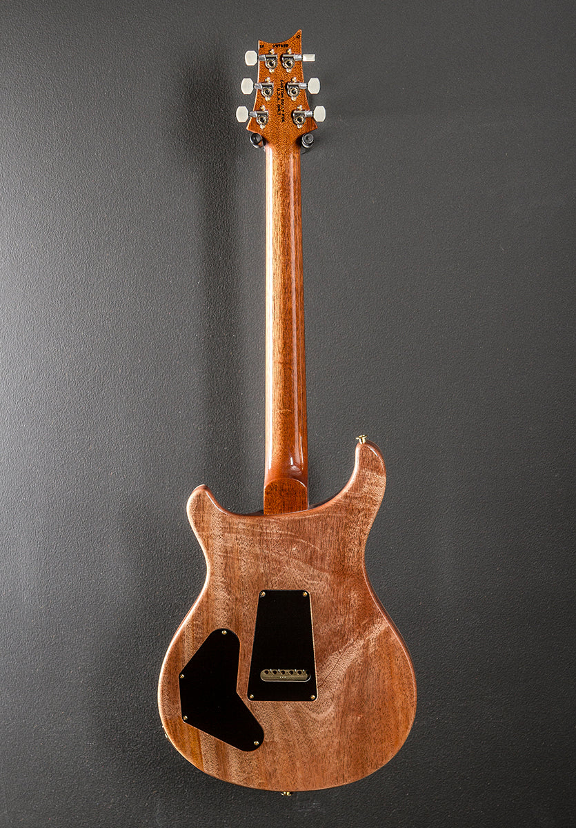 Red Tiger, High gloss nitro finish, Violin carved Quilt Maple 10 top, Mahogany body, DGT carved Mahogany neck, 10" radius Brazilian Rosewood fingerboard with the Gold Mother of Pearl outlined Mother of Pearl Bird inlays, 25" scale length, 1 21/32nd" nut width, PRS DGT bridge and neck pickups, 3-way toggle switching with the volume/volume and push/pull coil tap tone controls, PRS patented Gen III tremolo, PRS Phase III locking tuners with the faux bone buttons, 7.8 pounds, With the Black Paisley hardshell case