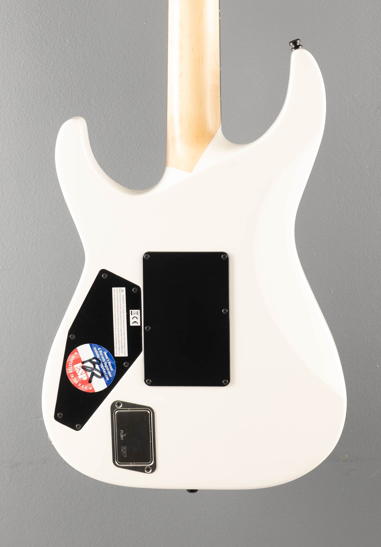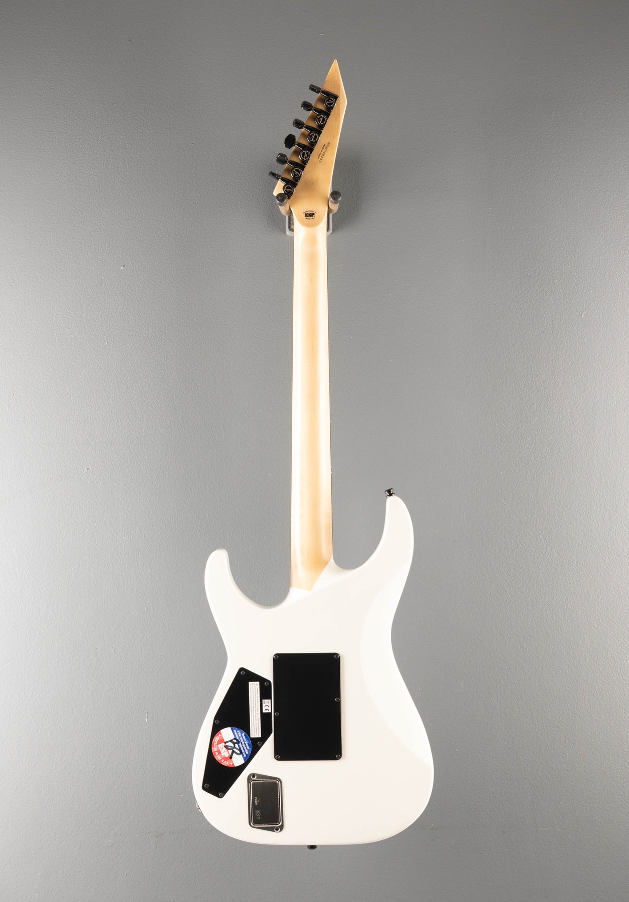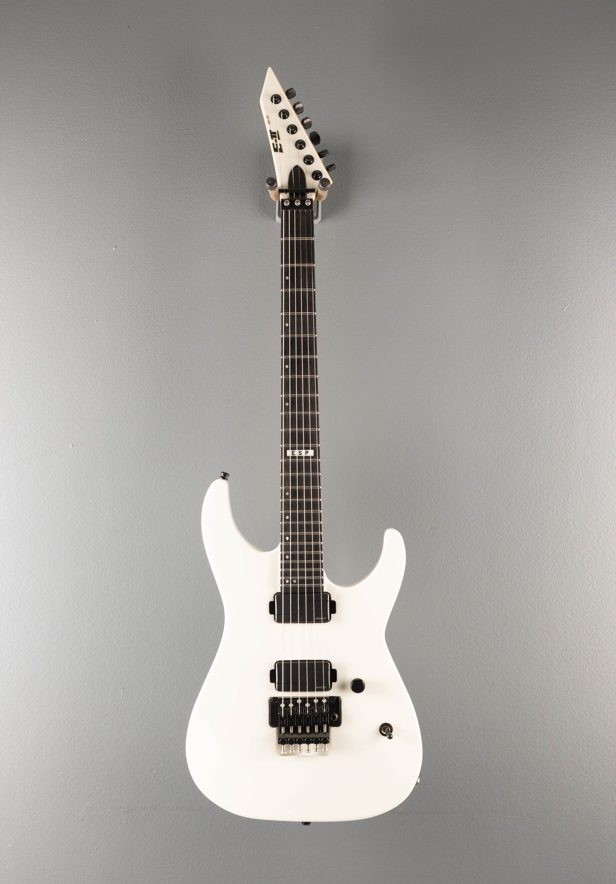 "Formerly known as “ESP Standard”, ESP E-II instruments are made in Japan at the ESP factory. Get used to hearing “wow!” a lot if you’re the owner of an E-II M-II in Snow White finish. This guitar isn’t for people who want to blend meekly into the background; it’s a high-performance speed machine that creates its own spotlight on those who play it. The E-II M-II Snow White uses neck-thru-body construction at 25.5” scale for extreme stability and sustain, as well as unencumbered access to its 24 extra jumbo stainless steel frets. It offers an alder body with a three-piece maple neck that features a natural satin finish on the back for extreme speed and fluidity. In addition to its stainless steel frets, the ebony fingerboard features offset mother-of-pearl dot inlays. High-end components on the E-II M-II Snow White include a Floyd Rose Original double-locking bridge, upgraded with stainless steel screws for long-term reliability, as well as Gotoh locking tuners and ESP strap locks. Its versatile tones come from a set of direct-mounted Fishman Fluence Modern Humbucker active pickups with black covers, with voice selection via a push-pull volume knob. Includes ESP deluxe hardshell case."