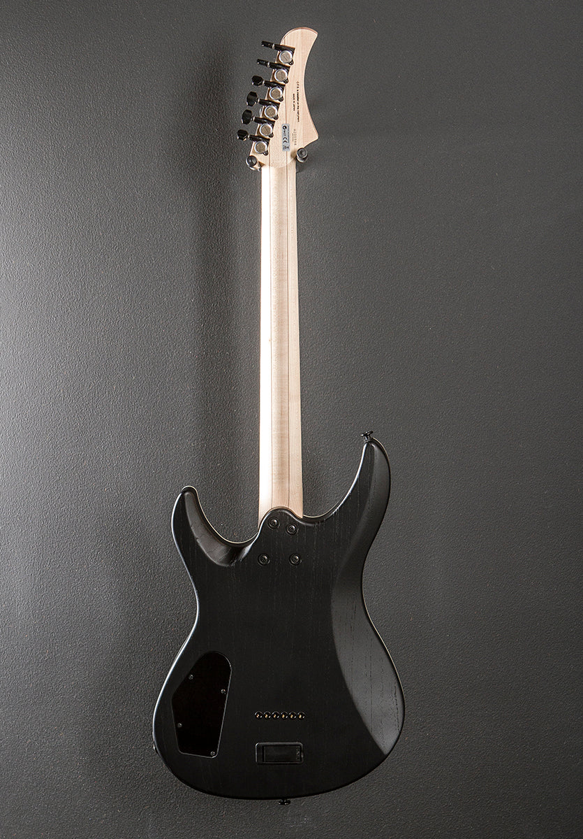 Open Pore Black, Made in Japan, Ash body with a bound arched top, Asymmetrical slim U shaped three piece Maple/Walnut neck with a 12" radius Ebony fingerboard and jumbo frets, 25.5" scale length, 1 11/16th" nut width, Active Fishman M36-CB1 bridge and Fishman M36-AB1 neck pickups, 3-way toggle switching with the volume and push/pull tone controls, FGN bridge and stop tailpiece, Gotoh MG-T locking tuners, The neck thickness is .74″ at the first and .83″ at the 12th frets, 7.4 pounds, With gig bag, Very good