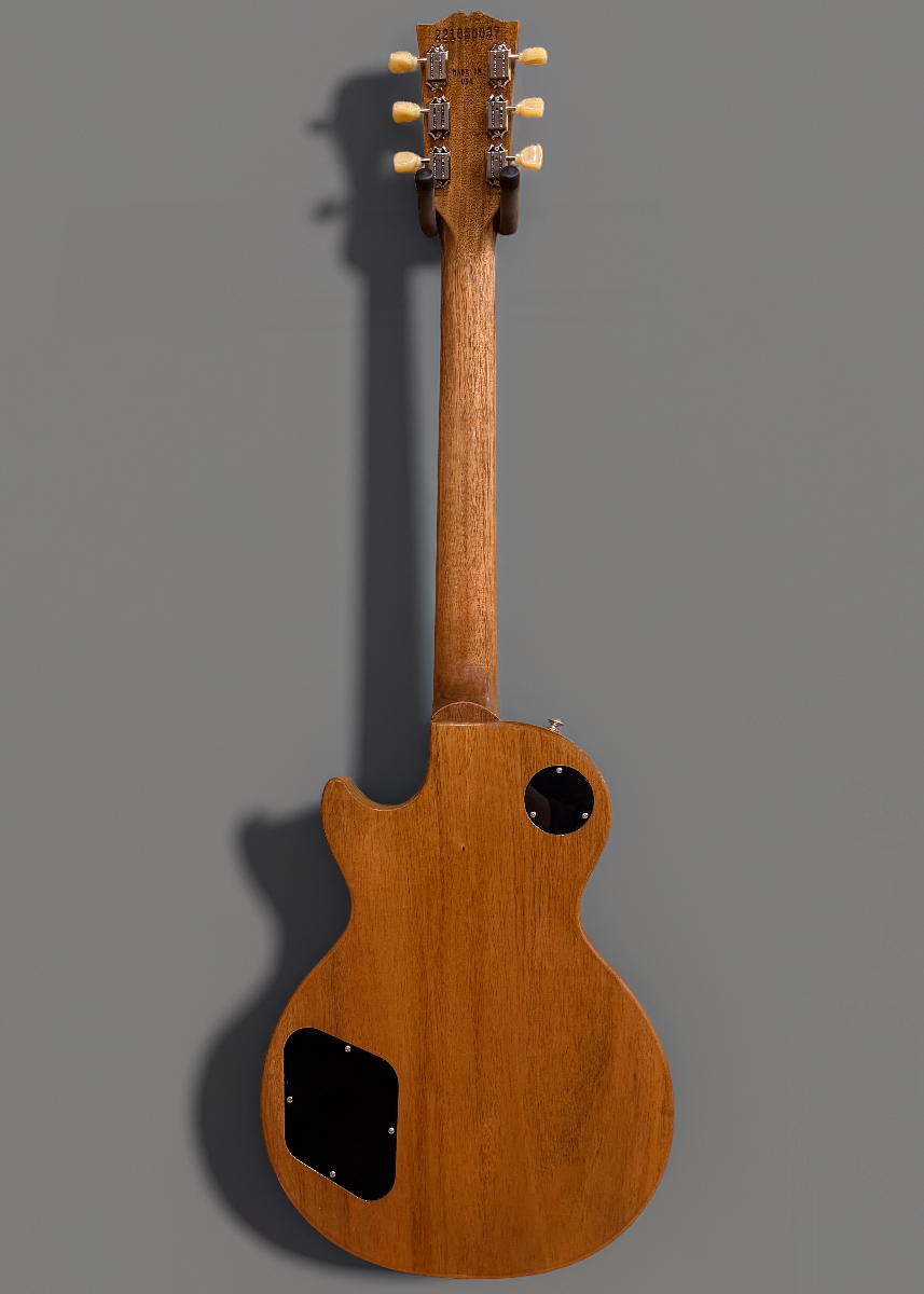 Vintage Honey Burst, Gloss nitrocellulose lacquer finish, AA figured Maple top on a solid Mahogany body, 50’s vintage shaped Mahogany neck, Bound 12” radius Rosewood fingerboard with the acrylic trapezoid inlays and medium jumbo frets, 24.75” scale length, 1.69″ nut width, Uncovered classic double white bobbin Burstbucker #2 bridge and Burstbucker #1 neck pickups, 3-way toggle switching with the volume and tone controls for each pickup, ABR-1 tune-o-matic bridge and aluminum stopbar tailpiece, Gibson vintage deluxe tuners, 9.4 pounds, With hardshell case