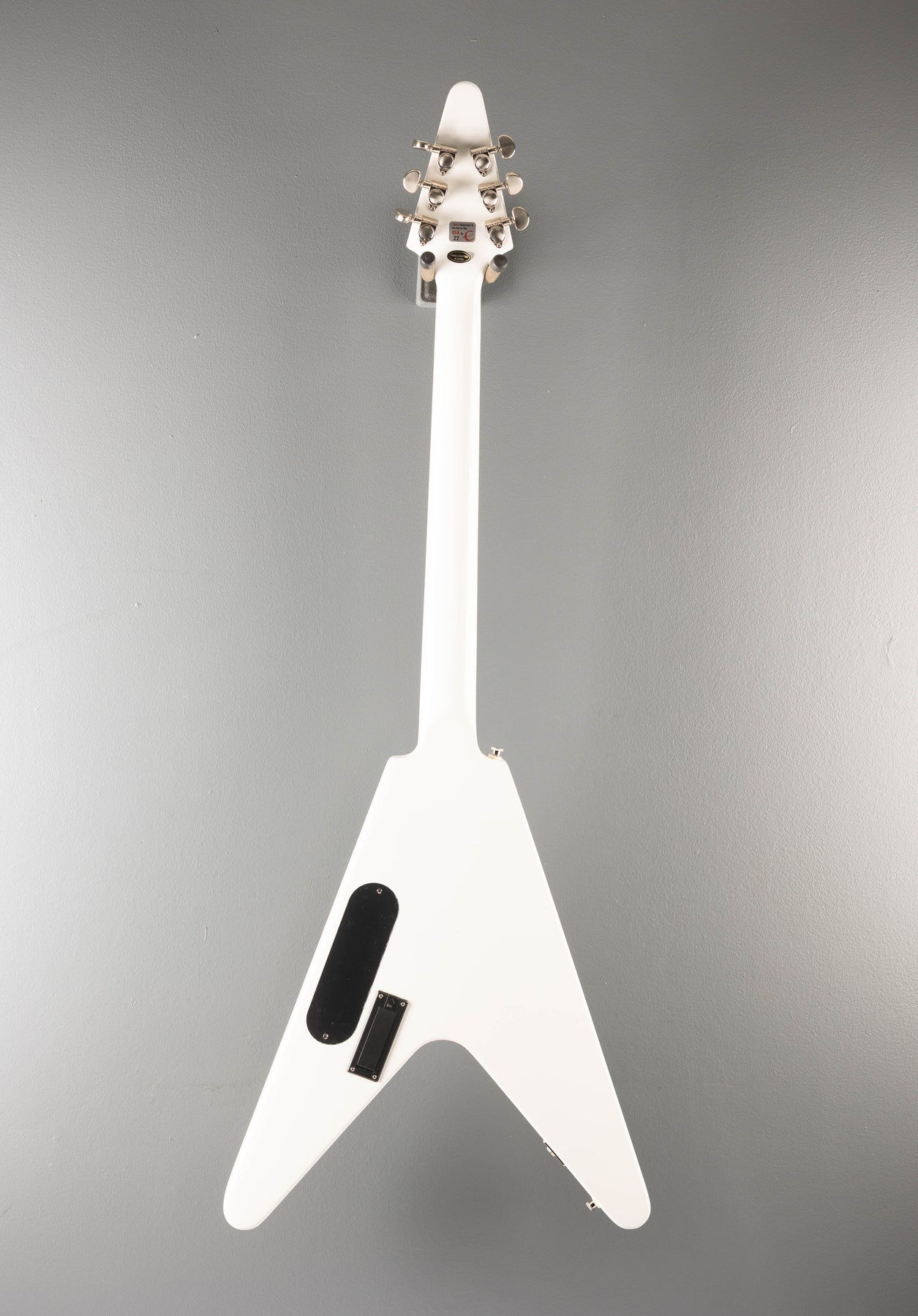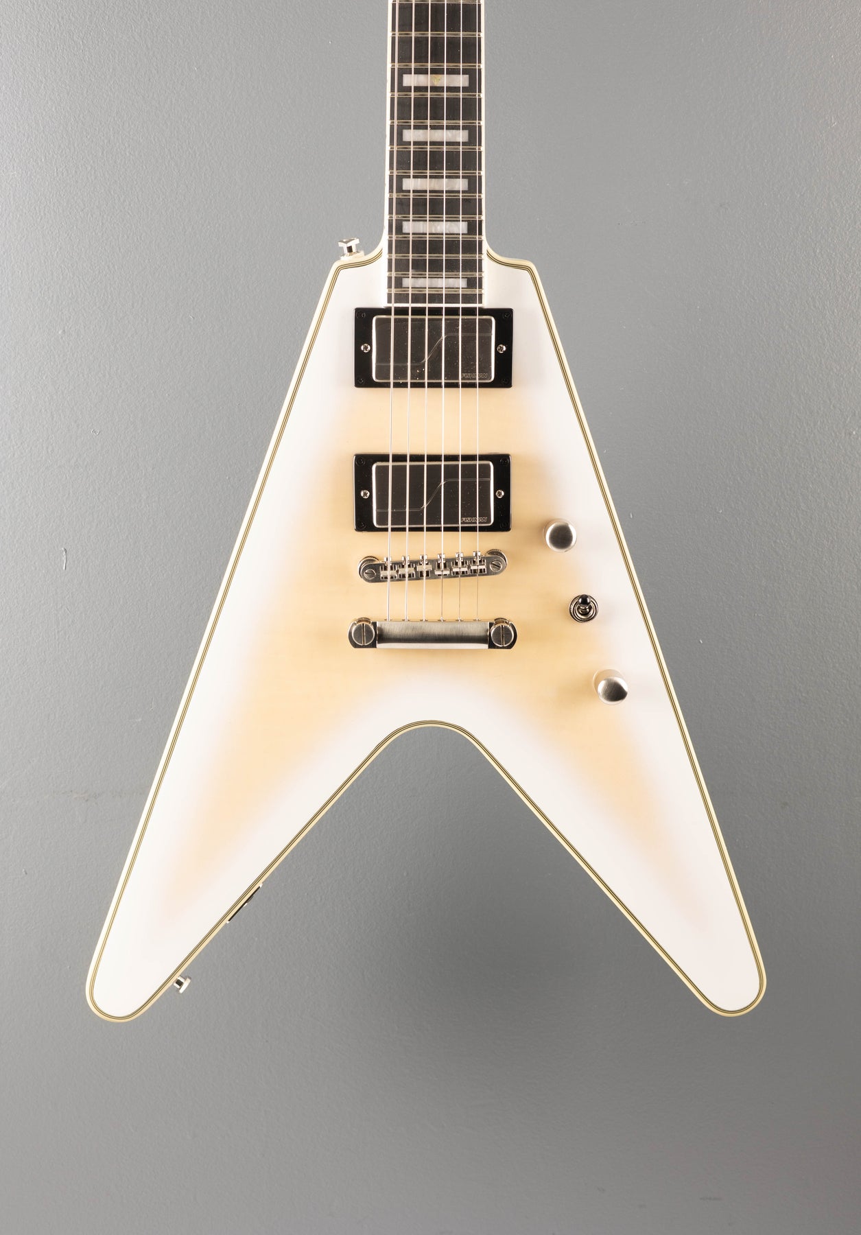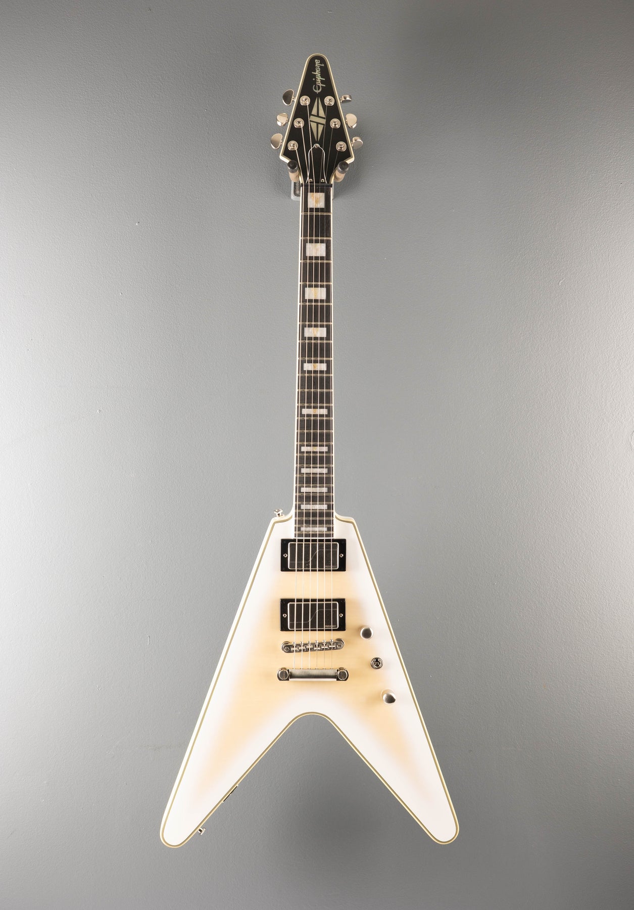 The Flying V™ Prophecy also includes Grover® locking Rotomatic® tuners, Epiphone's LockTone™ Tune-O-Matic™ bridge and tailpiece for added sustain, a GraphTech® NuBone® nut that boosts harmonic content and increases tuning stability, custom binding, ebony fretboard, jumbo frets, PosiLok strap buttons, and an asymmetrical SlimTaper™ neck for comfort and speed. A premium gigbag is included."