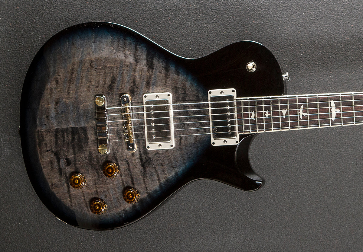Faded Gray Black/Blue Smokeburst, High gloss nitro finish, Asymmetric beveled figured Maple top on a Mahogany body, Pattern Vintage carved Mahogany neck, 10″ radius Rosewood fingerboard with the Bird inlays and faux bone binding, 24.594” scale length, 1 11/16th” nut width, PRS 58/15LT bridge and neck pickups, 3-way toggle switching with the volume and push/pull coil tap tone controls for each pickup, PRS two-piece bridge, PRS Phase III non-locking tuners with the wing buttons, The neck thickness is .88″ at the first and .98″ at the 12th frets, 8.6 pounds, With gig bag, Excellent
