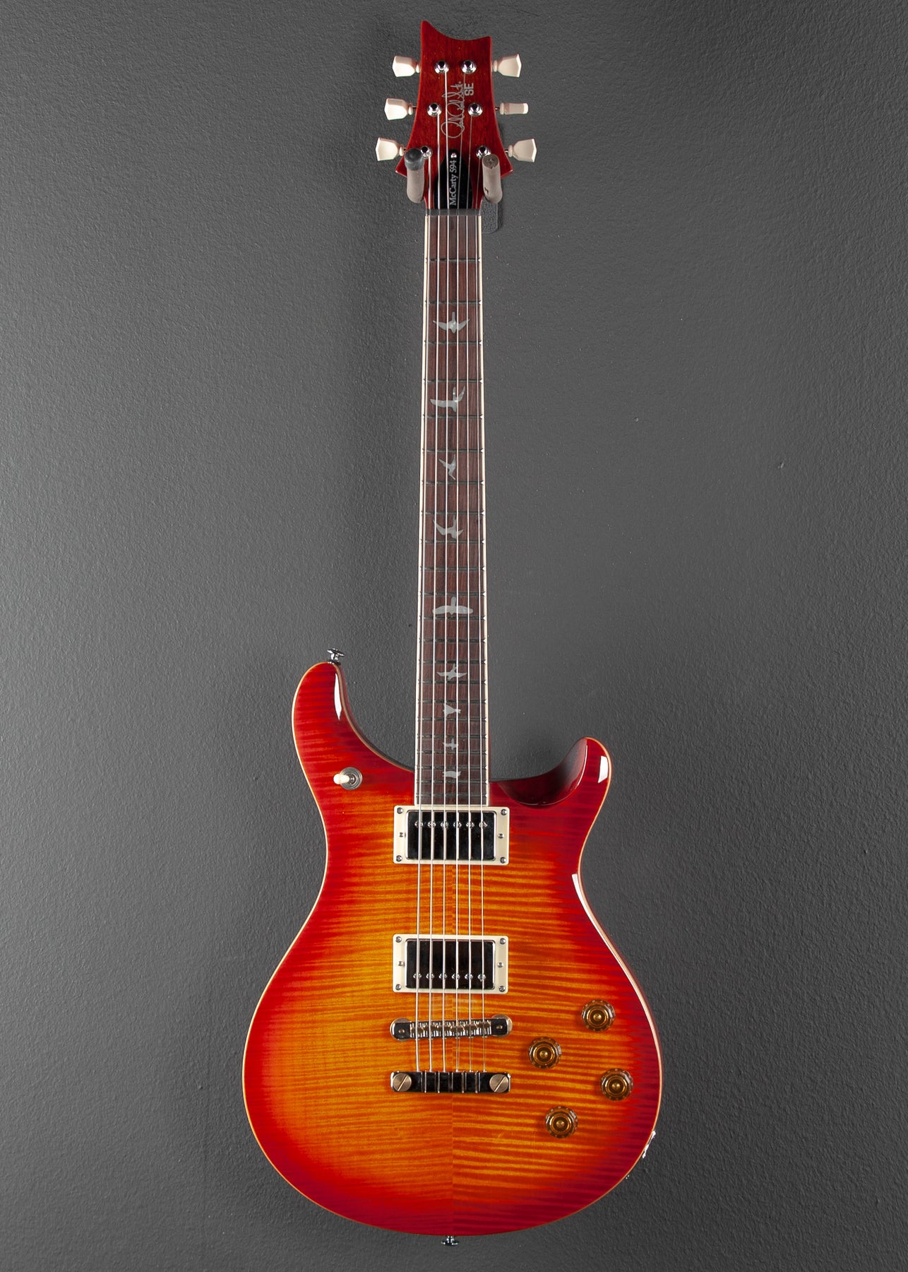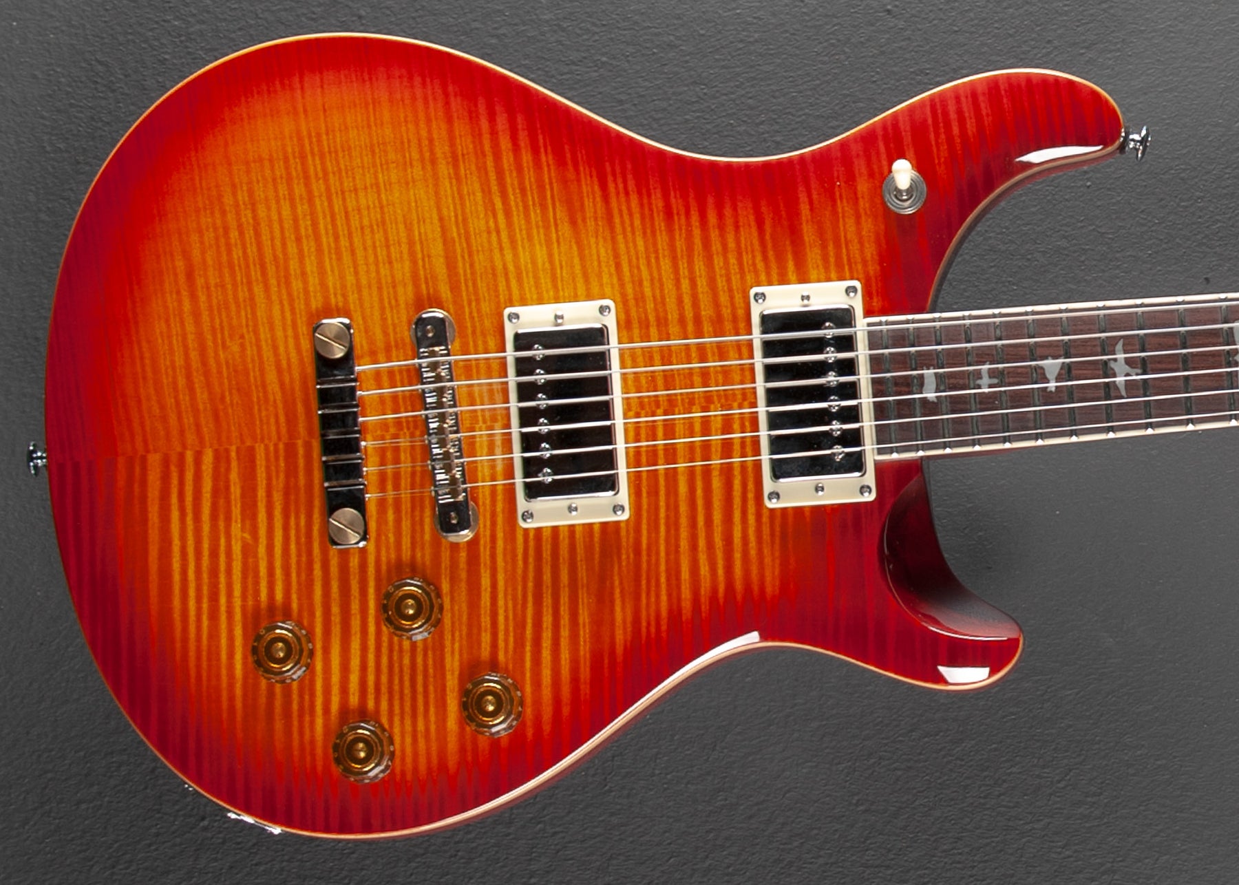 Vintage Sunburst, Shallow violin carved Maple top with a Flame Maple veneer, Pattern Vintage carved Mahogany neck, Bound 10" radius Rosewood fingerboard with Bird inlays, 24.594” scale length, 1 11/16th" nut width, 58/15 LT "S" bridge and neck pickups, 3-way toggle switching with volume and push/pull coil tap tone controls for each pickup, PRS two-piece bridge and vintage style tuners, 7 pounds. With gig bag, Very good