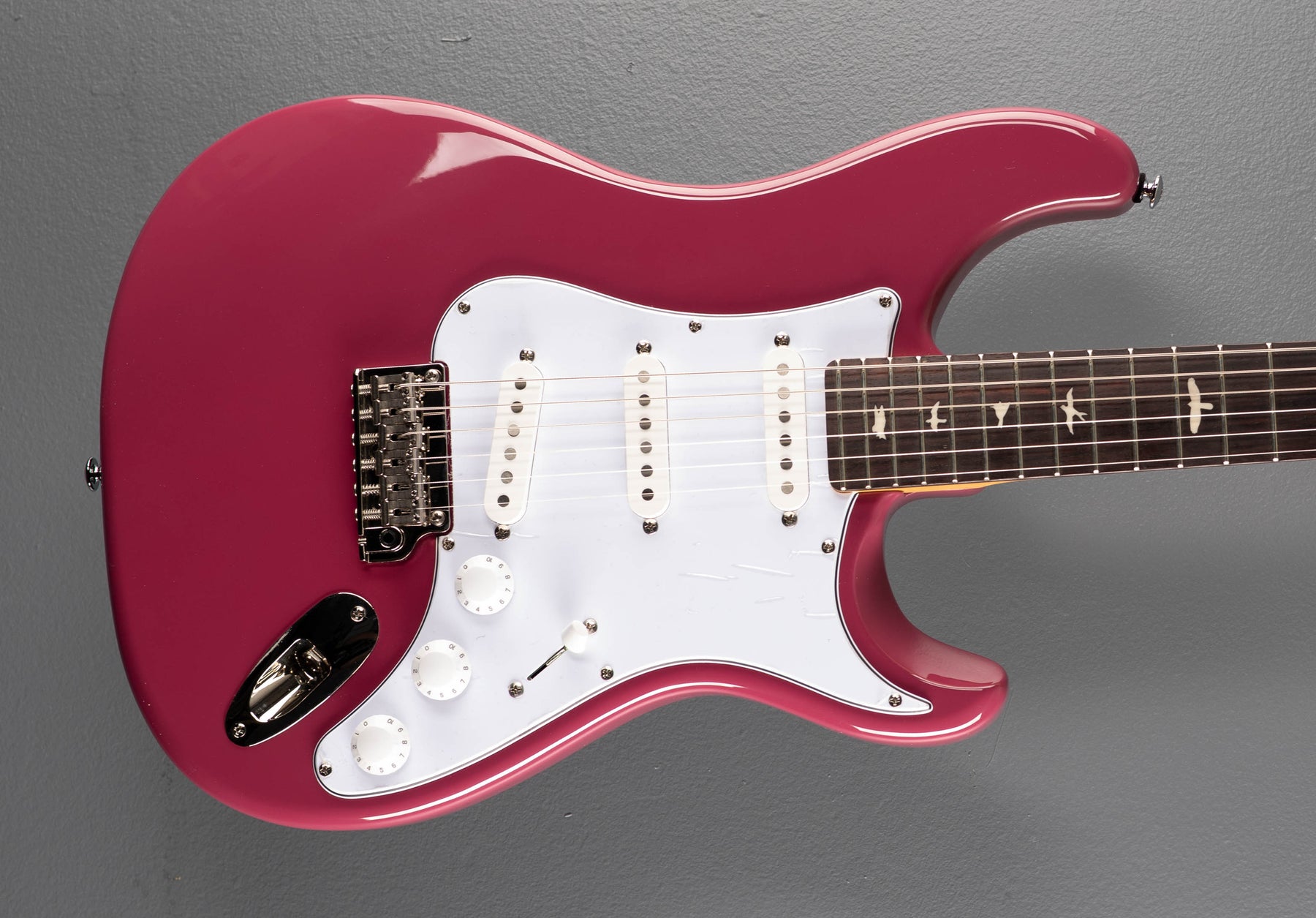 Excellent Condition, Dragon Fruit, Poplar body, 635JM shaped Maple neck with an 8.5” radius Rosewood fingerboard and the small Bird inlays, 25.5" scale length, 1 20/32nd" nut width, 635JM single coil pickups, 5-way switching with the master volume and two tone controls, Two point steel tremolo and nickel hardware, Vintage style tuners, 7.2 pounds, With gig bag.