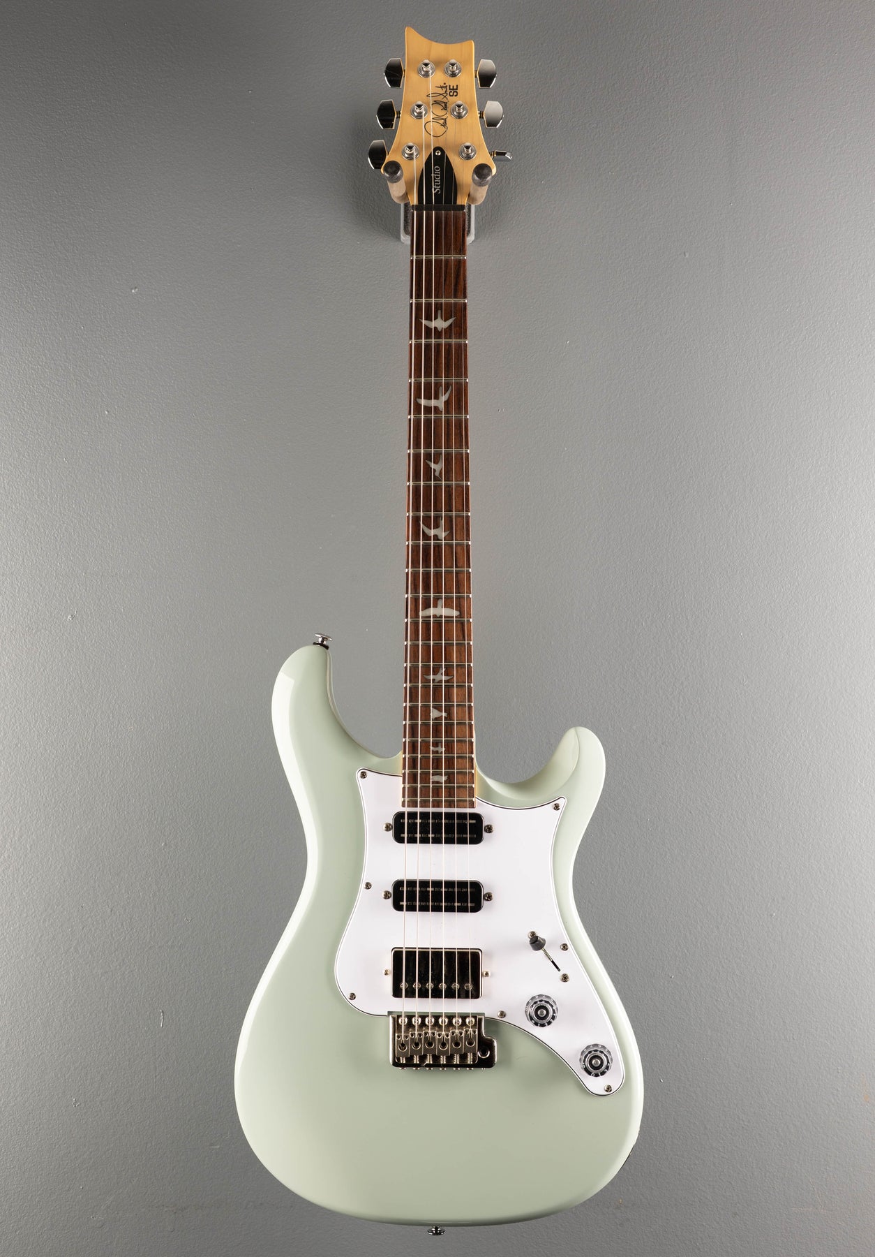 Excellent Condition, Silvertone Gray, Flat Top Mahogany body, 10" radius Rosewood fingerboard with bird inlays on a Wide Thin carved Maple neck, 1 11/16" nut width, 25" scale length, 58/15 “S” bridge and Narrowfield DD “S” Neck/Middle pickups, 5 way switching with volume and push pull coil tap tone controls, PRS Patented Tremolo and PRS Designed Tuners, 7.5 pounds, comes with gig bag.