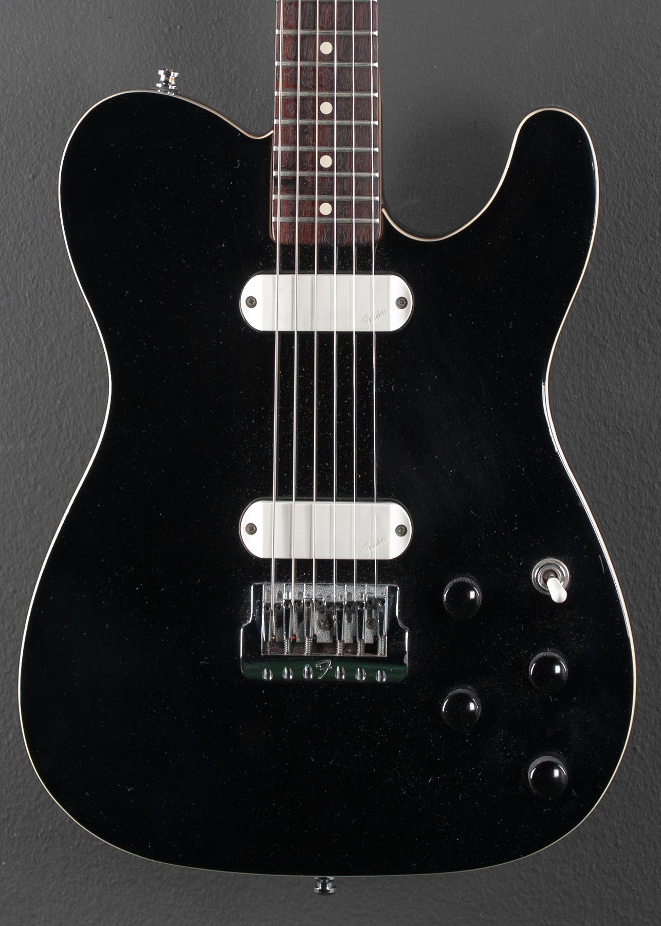 Black, Alder body, Gloss polyurethane body finish, slim Maple neck with a 12" radius Rosewood fingerboard and jumbo frets, 25.5" scale length, 1.700" nut width, Fender covered Alnico II noise cancelling pickups, 9 volt active preamp and volume/TBX and MDX tone controls, Fender/Schaller tuners, The neck thickness is .812″ at the first and .859″ at the 12th frets, 8 pounds, with original Voyagair flight case, Very good