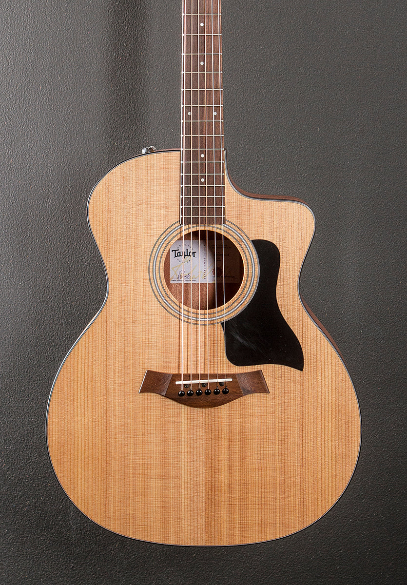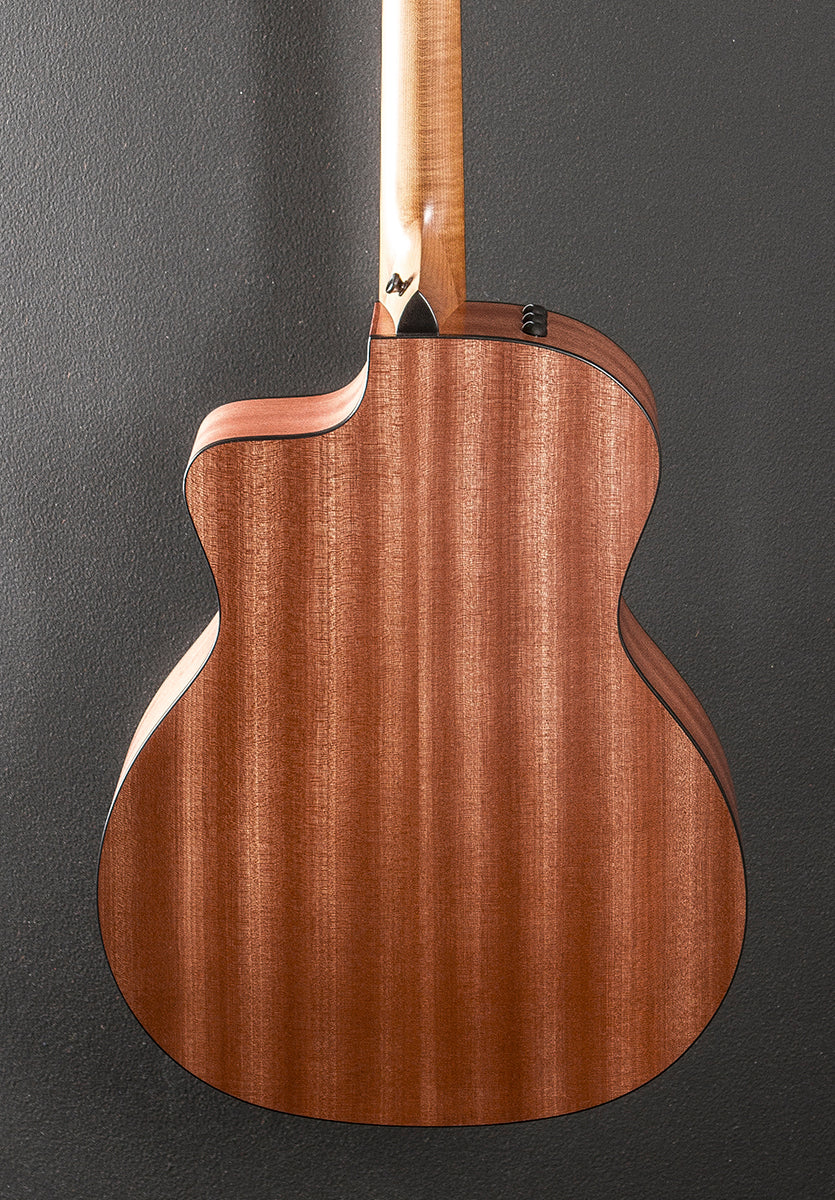 Natural, Matte finish, Grand Auditorium body shape with the venetian cutaway, Torrefied Spruce top, Three Ring Plastic Rosette, C-Class bracing with Relief Rout, Layered Sapele back and sides, Black binding, Eucalyptus fingerboard with the faux pearl 4mm dot inlays on a Hard Rock Maple neck, 25.5” scale length, 1 11/16th” nut width, Cast/sealed tuners, The neck thickness is .83″ at the first and .87″ at the 9th frets, With the Expression 2 pickup system and gig bag, Excellent