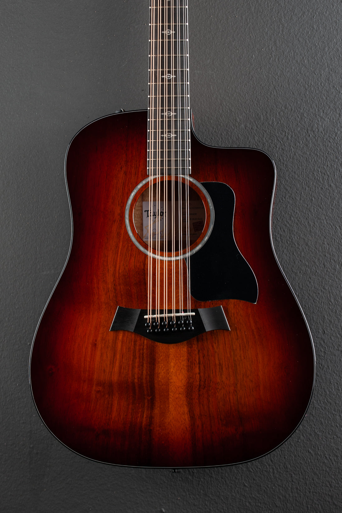 With its singular blend of regionally inspired Mexican sound, stunning koa beauty and exceptional playability, there's never been a Taylor like the 260ce-K DLX Doce Doble. Named for its unique "double-twelve" configuration, this cutaway Dreadnought acoustic-electric is a unison-strung 12-string that draws on traditional Latin styles to serve up a bold, vibrant voice with a clear midrange character and a dash of low-end warmth. A solid Hawaiian koa top yields a punchy response that will grow warmer and sweeter as the wood matures with time and play, with a variant of our proprietary V-Class voicing architecture inside to dial up more volume and longer sustain. As a Deluxe model, this Doce Doble features upgraded appointments including a gloss-finish bosy with a shaded edgeburst treatment for the entire guitar, Sentinel fretboard inlays in Italian acrylic, black binding with a matching pickguard, a single-ring rosette, and gold hardware. It ships with ES2 electronics and a deluxe hardshell case.