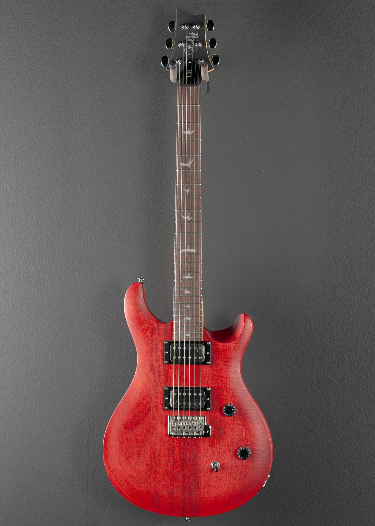 Vintage Cherry, Mahogany body with a shallow violin carved top, Wide/Thin carved Maple neck, 10″ radius Rosewood fingerboard with Bird inlays, 25″ scale length, 1 11/16th″ nut width, PRS 85/15 “S” bridge and neck pickups, 3-way toggle switching with volume and push/pull coil tap tone controls, PRS patented molded tremolo and PRS designed tuners, 6.8 pounds, With gig bag, Very Good.