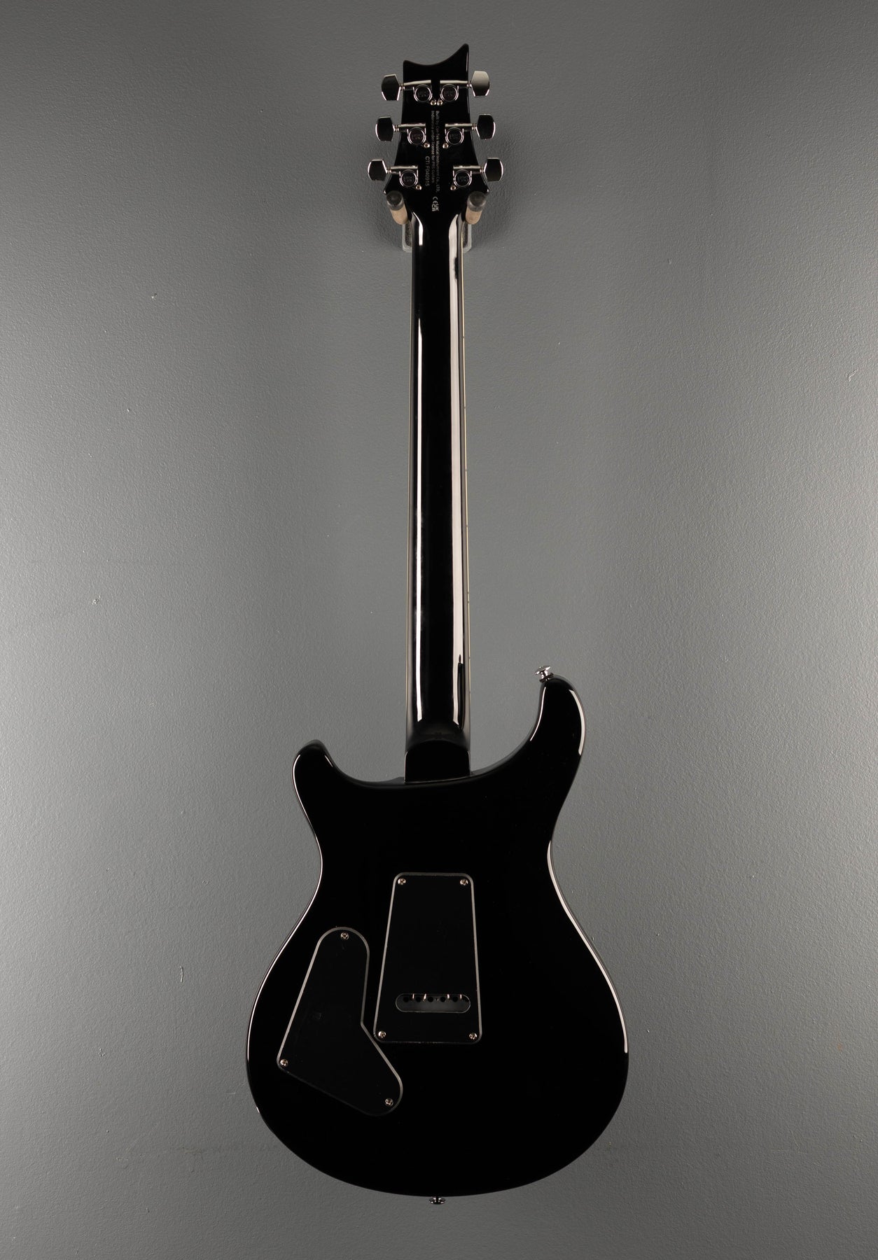 Excellent Condition, Violet, Shallow Violin carved Maple top with a Quilt Maple veneer, Mahogany body, Wide/Thin carved Maple neck, Bound 10″ radius Ebony fingerboard with the Bird inlays, 25″ scale length, 1 11/16th″ nut width, 85/15 “S” bridge and neck pickups, 3-way blade switching with the volume and push/pull coil tap tone controls, PRS patented  tremolo and PRS designed tuners, 7.9 pounds, With PRS SE Grey gig bag.