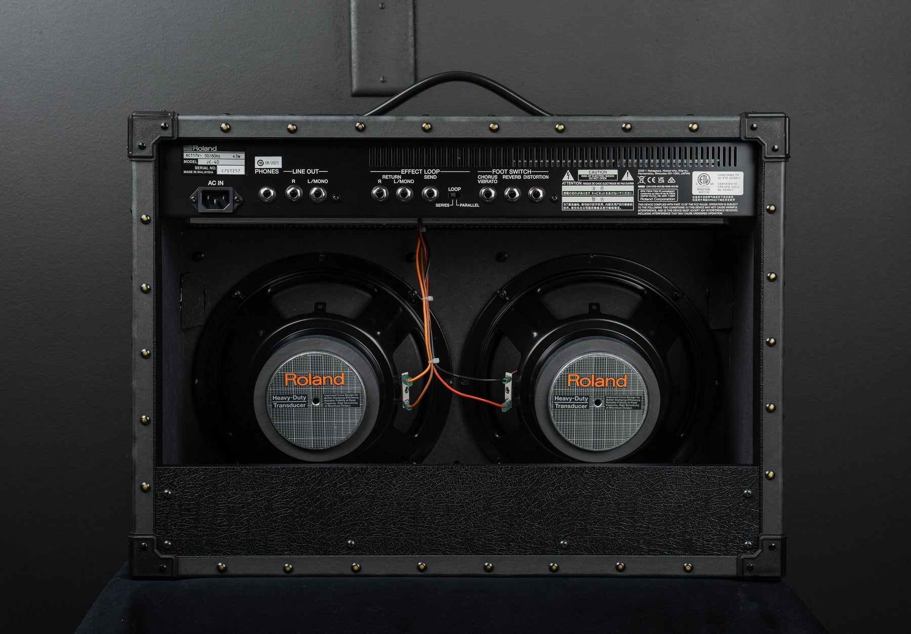 From Roland: "The JC-40 Jazz Chorus delivers Roland’s renowned “JC clean” tone and signature stereo chorus effect in a compact combo amp with evolved features for the modern guitarist. Like the flagship JC-120 amp that it’s based on, the JC-40 offers a classic stereo clean sound that’s a perfect palette for tone shaping with stompbox effects. Now, there’s also a true stereo input for enhanced performance with stereo effects pedals, guitar synths, amp modeling gear, and multi-effects. In addition, the JC-40’s onboard effects include newly added features and updated sounds to support the needs of today’s players."