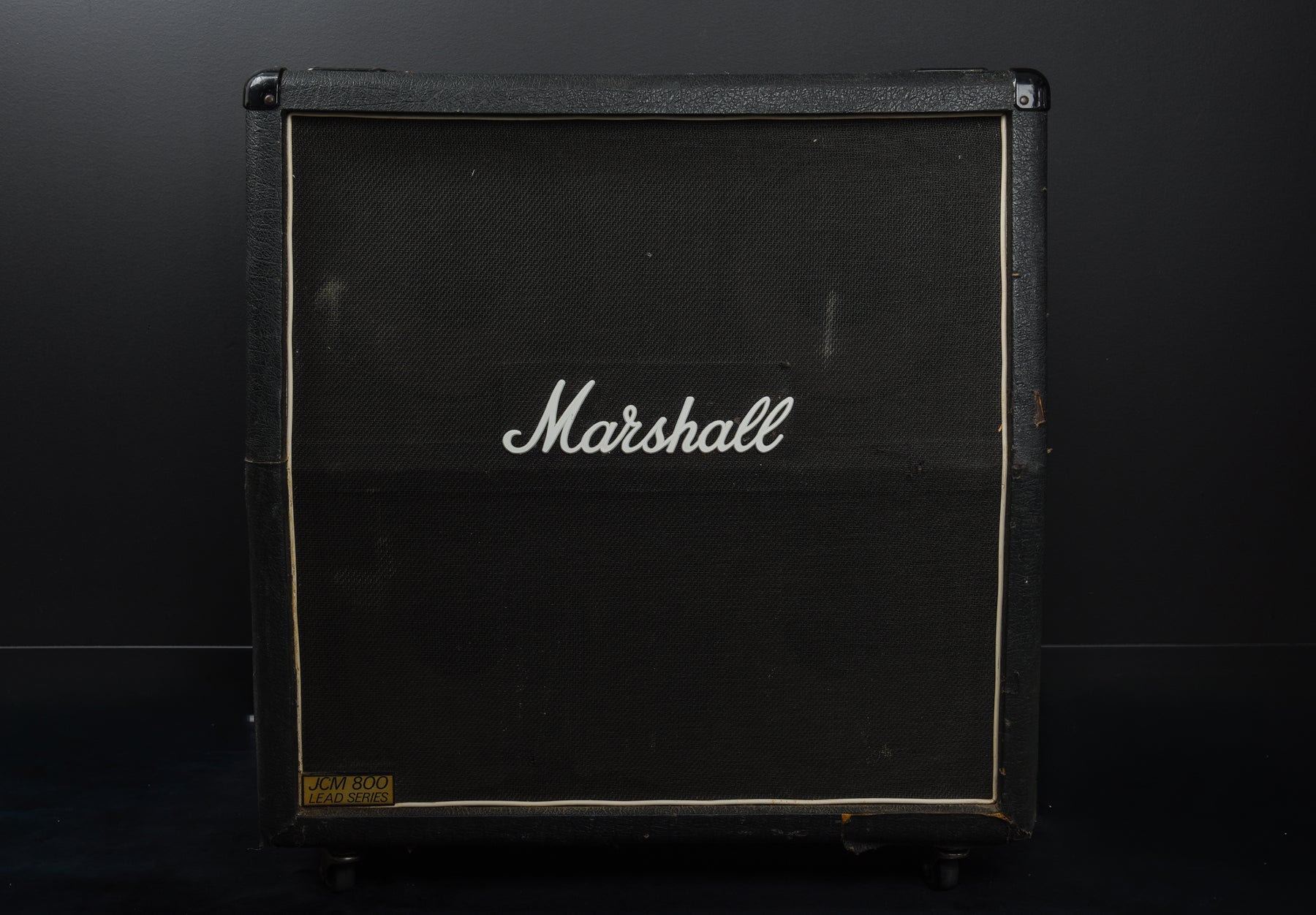 Good Condition, Marshall JCM 800 Lead 1982A 4×12 Cabinet, 400W Power Handling at 4/16 Ohm Selectable Impedance, Black Tolex Exterior With Moderate Wear, Comes As Cabinet Only.