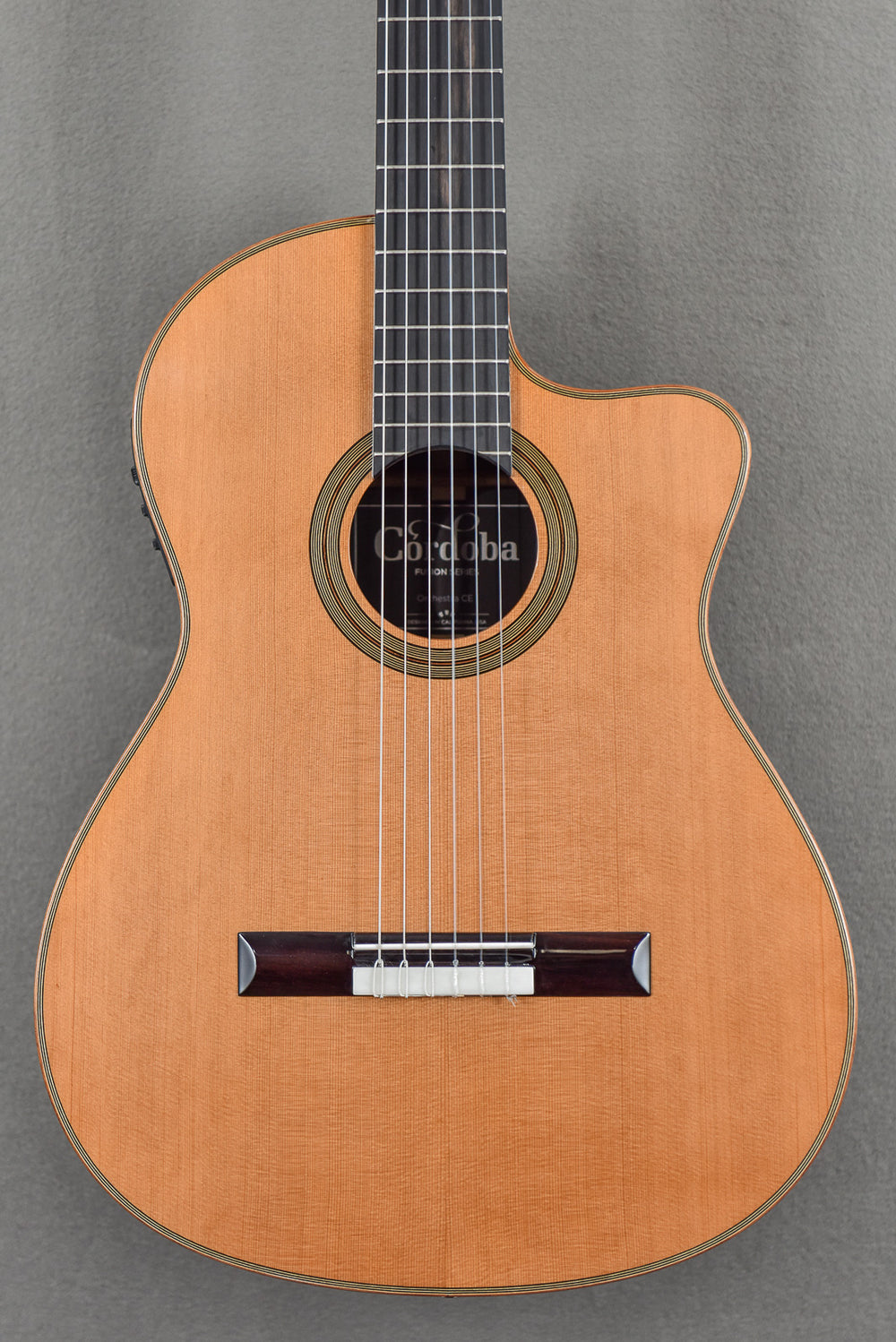"The Orchestra CE is one of our best selling crossover guitars. Available with a solid Canadian cedar top and rosewood back and sides, this model's main feature is its slim neck profile and only 12 frets to the body, which maximizes the amount of resonance and vibration across the soundboard. It's the perfect blend of classic Spanish designs with modern aesthetics—a hand-inlaid wooden rosette, elegant mahogany binding and a high gloss PU finish. Ready to plug in and play, the Orchestra CE comes equipped with the Fishman Presys Blend preamp."