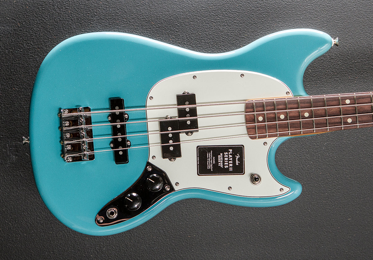 The Player II Mustang® Bass PJ radiates timeless Fender charm, but under the hood, it's primed for today's players. Everything about the neck is designed for fast and fluid playability, from the Modern “C”-profile with silky satin urethane finish on the back to the comfy 9.5”-radius slab rosewood or maple fingerboard with smooth rolled edges and 20 medium jumbo frets. A classic alder body is available in both timeless Fender finishes and never-before-seen colors unearthed from the archives. Player Series Alnico V Split-Coil P bass® and Single-Coil J bass® pickups offer sweet highs, growling mids and seismic lows that elevate any genre. The 3-way toggle switch lets you easily dial in everything this versatile pickup set has to offer, while an adjustable 4-saddle bridge, single-groove steel saddles and open-gear tuners ensure precise tuning stability for the flexibility to explore endless sonic possibilities.