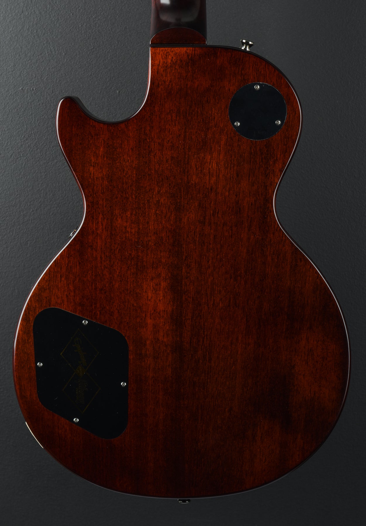 Tobacco Burst, VOS Vintage Original Sheen Polyurethane Finish, Maple Top with AAA Flame Maple Veneer, Mahogany Body, 1959 Rounded Medium C Shaped Mahogany Neck, Bound 12” Radius Indian Laurel Fingerboard with Mother of Pearl Trapezoid Inlays and Medium Jumbo Frets, 24.75” Scale Length, 1.692″ Nut Width, Gibson Custombucker Bridge and Neck Pickups, 3-Way Toggle Switching with Volume and Tone Controls for Each Pickup, ABR-1 Tune-O-Matic Bridge and Gibson Historic Reissue Stop Bar Tailpiece, Epiphone Deluxe Tuners with Keystone Buttons, 8.3 Pounds, with Vintage Style Hardshell Case