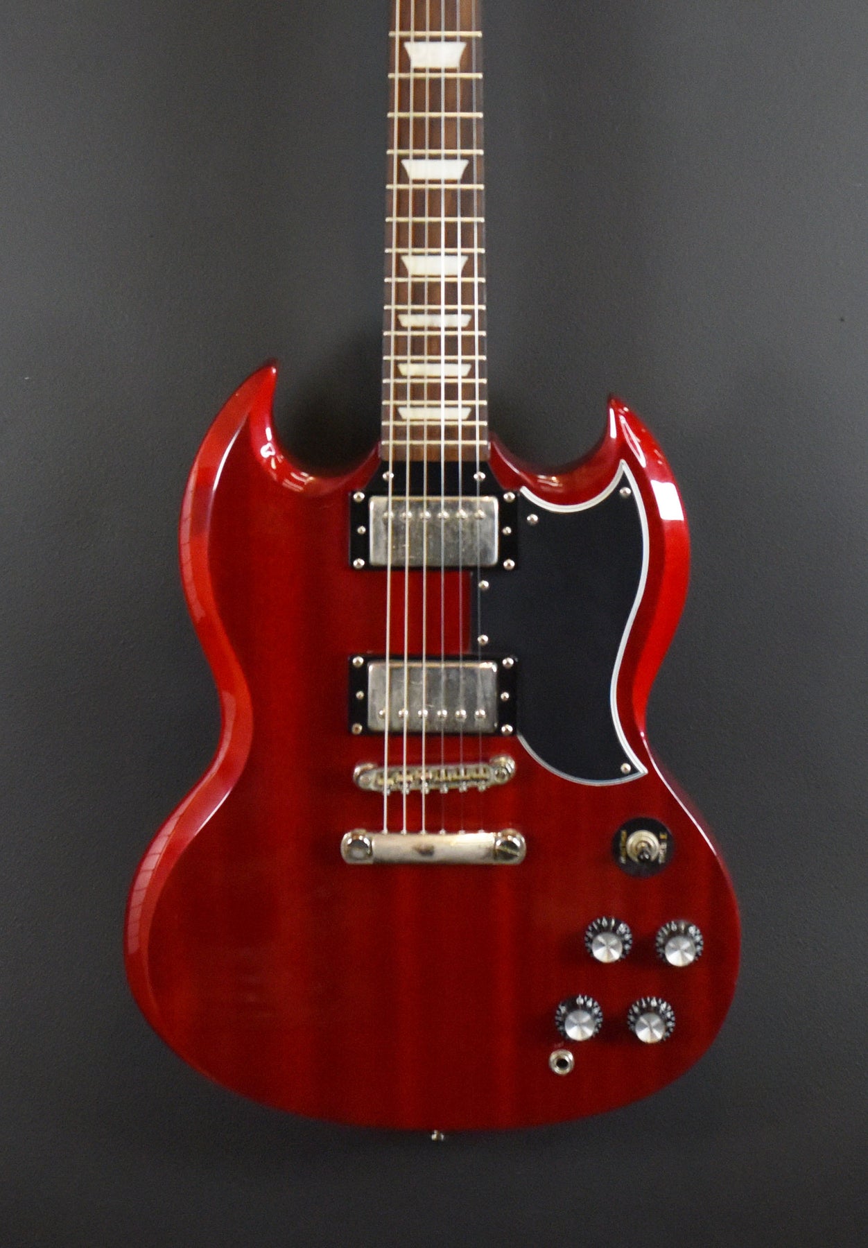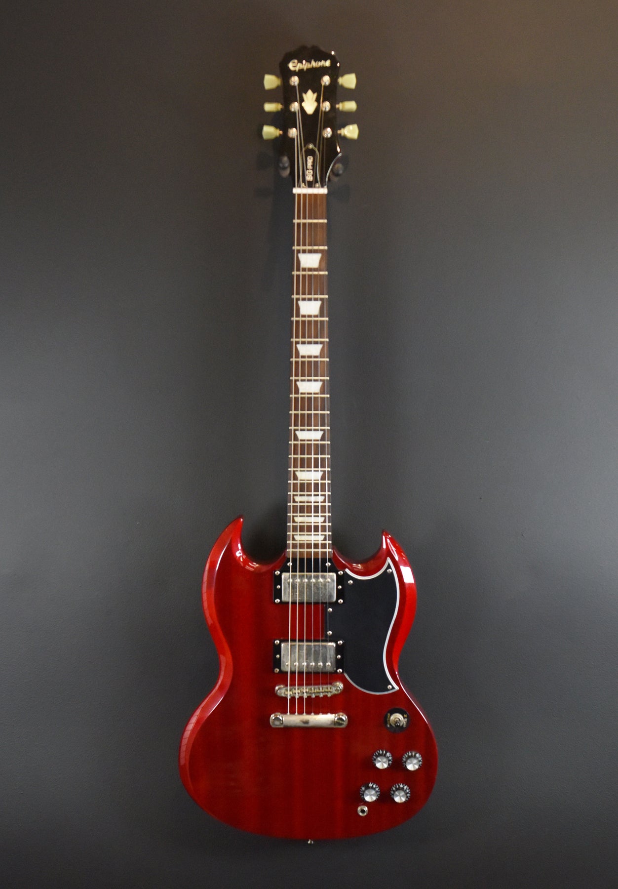 Cherry, Mahogany body, 60's slim taper D shaped Mahogany neck with a 12" radius Rosewood fingerboard and medium jumbo frets, 24.75" scale length, 1 11/16th" nut width, Epiphone Alnico Classic Pro humbucking bridge and neck pickups, 3-way toggle switching with the push/pull coil tap volume and tone controls for each pickup, Tune-o-matic bridge and stop tailpiece. Neck depth - 1st: .82" 12th fret: .91" 6.9 pounds. With gig bag, Good.