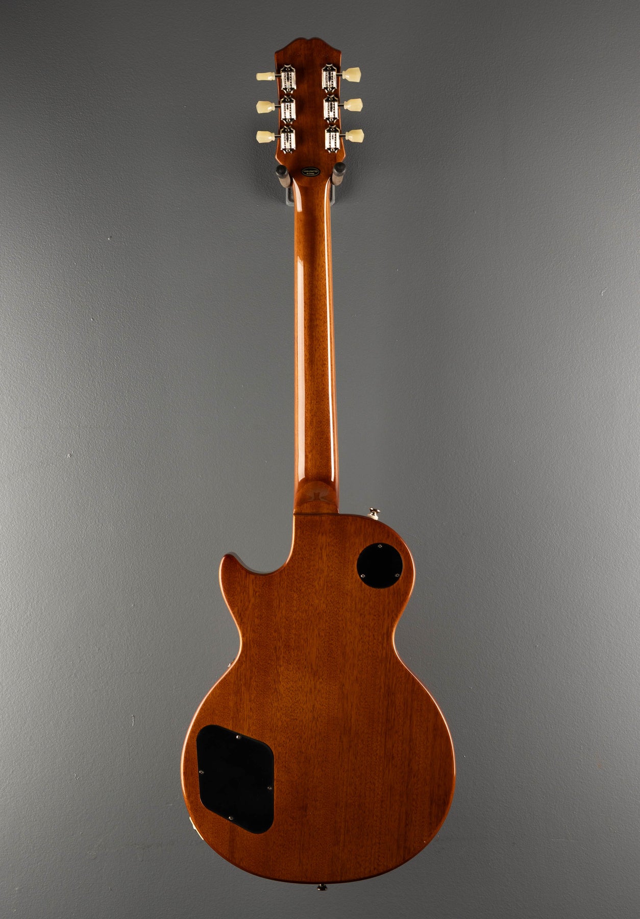 "Epiphone’s Inspired by Gibson™ Collection proudly presents the Les Paul™ Standard 50s! This guitar lovingly recreates the feel and tone of the 1950s-era Les Pauls. Epiphone’s long friendship with Mr. Les Paul began in 1940 when Les built one of the world’s first solidbody electric guitars while working nights at the original Epiphone factory in Manhattan. Les’ first solidbody guitar, nicknamed “the Log,” would go on to inspire the Les Paul Standard, which many consider the greatest electric guitar ever made. This guitar is crafted with a mahogany body with a maple cap, a bound ’59 Rounded Medium C-shaped mahogany neck with long neck tenon, laurel fretboard with classic trapezoid inlays and 22 medium jumbo frets, Epiphone’s Vintage Deluxe tuners, a pair of critically acclaimed Epiphone Probucker™ humbuckers™, and gold Top Hat knobs with dial pointers. This Epiphone Inspired by Gibson Original model also has the Kalamazoo headstock, Graph Tech® nut, era-appropriate wiring, and CTS® pots. A premium gig bag is also included."