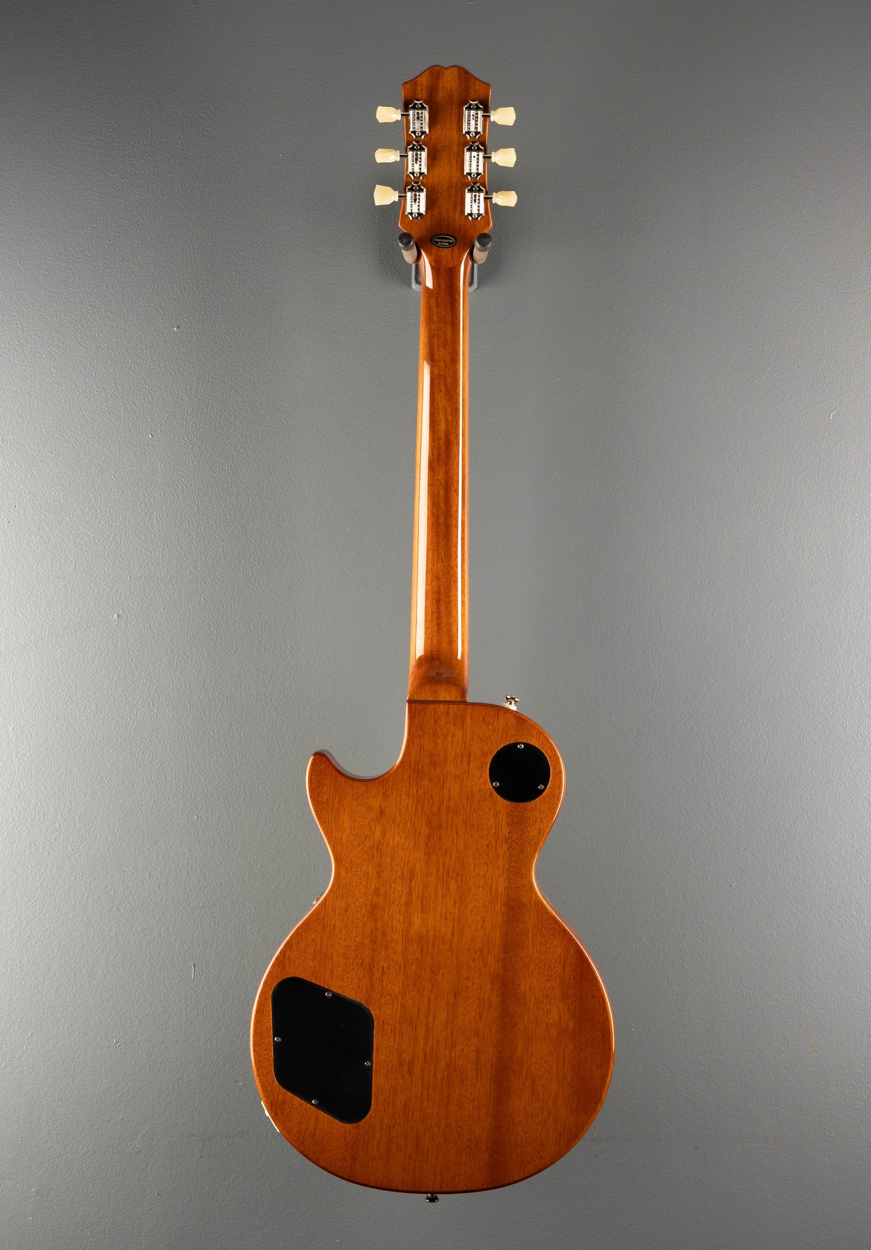"Epiphone’s Inspired by Gibson™ Collection proudly presents the Les Paul™ Standard 50s! This guitar lovingly recreates the feel and tone of the 1950s-era Les Pauls. Epiphone’s long friendship with Mr. Les Paul began in 1940 when Les built one of the world’s first solidbody electric guitars while working nights at the original Epiphone factory in Manhattan. Les’ first solidbody guitar, nicknamed “the Log,” would go on to inspire the Les Paul Standard, which many consider the greatest electric guitar ever made. This guitar is crafted with a mahogany body, maple cap with AAA flame maple veneer, bound ’59 Rounded Medium C-shaped mahogany neck with long neck tenon, laurel fretboard with classic trapezoid inlays, Epiphone’s Vintage Deluxe tuners, a pair of critically acclaimed Epiphone Probucker™ humbuckers™, and gold Top Hat knobs with dial pointers. This Epiphone Inspired by Gibson Original model also has the Kalamazoo headstock, Graph Tech® nut, era-appropriate wiring, and CTS® pots. A premium gig bag is also included."