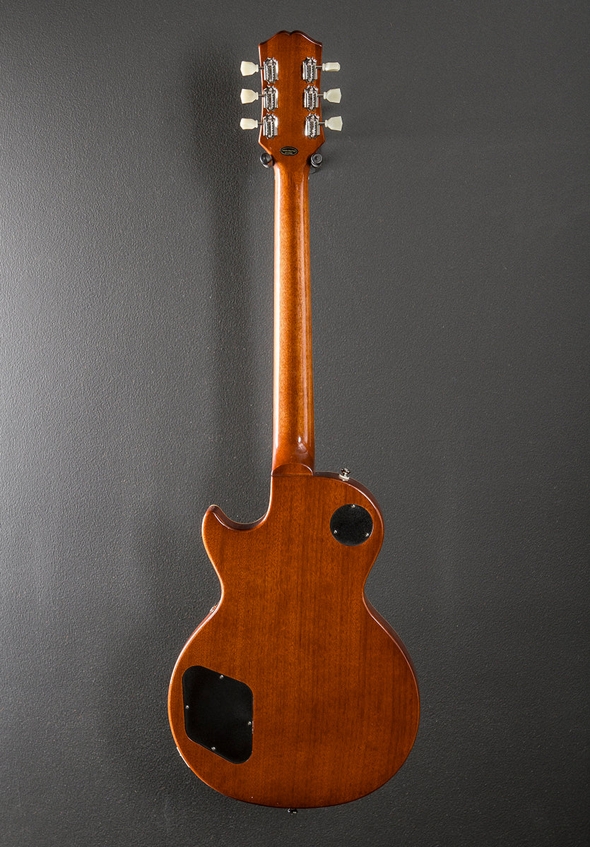 "Epiphone’s Inspired by Gibson™ Collection proudly presents the Les Paul™ Standard 50s! This guitar lovingly recreates the feel and tone of the 1950s-era Les Pauls. Epiphone’s long friendship with Mr. Les Paul began in 1940 when Les built one of the world’s first solidbody electric guitars while working nights at the original Epiphone factory in Manhattan. Les’ first solidbody guitar, nicknamed “the Log,” would go on to inspire the Les Paul Standard, which many consider the greatest electric guitar ever made. This guitar is crafted with a mahogany body, maple cap with AAA flame maple veneer, bound ’59 Rounded Medium C-shaped mahogany neck with long neck tenon, laurel fretboard with classic trapezoid inlays, Epiphone’s Vintage Deluxe tuners, a pair of critically acclaimed Epiphone Probucker™ humbuckers™, and gold Top Hat knobs with dial pointers. This Epiphone Inspired by Gibson Original model also has the Kalamazoo headstock, Graph Tech® nut, era-appropriate wiring, and CTS® pots. A premium gig bag is also included."