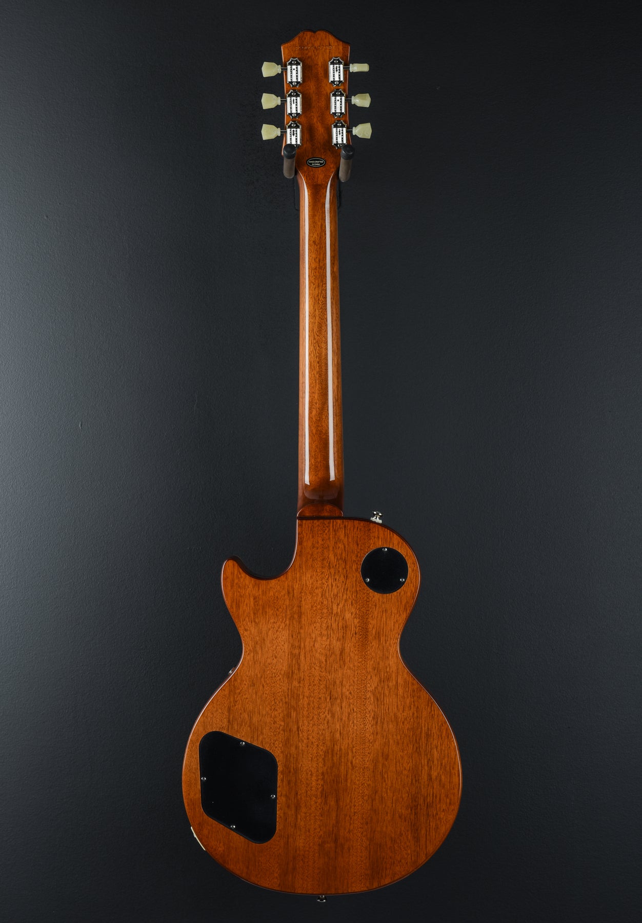 Epiphone’s Inspired by Gibson™ Collection proudly presents the Les Paul™ Standard 50s! This guitar lovingly recreates the feel and tone of the 1950s-era Les Pauls. Epiphone’s long friendship with Mr. Les Paul began in 1940 when Les built one of the world’s first solidbody electric guitars while working nights at the original Epiphone factory in Manhattan. Les’ first solidbody guitar, nicknamed “the Log,” would go on to inspire the Les Paul Standard, which many consider the greatest electric guitar ever made. This guitar is crafted with a mahogany body with a maple cap, a bound ’59 Rounded Medium C-shaped mahogany neck with long neck tenon, laurel fretboard with classic trapezoid inlays and 22 medium jumbo frets, Epiphone’s Vintage Deluxe tuners, a pair of critically acclaimed Epiphone Probucker™ humbuckers™, and gold Top Hat knobs with dial pointers. This Epiphone Inspired by Gibson Original model also has the Kalamazoo headstock, Graph Tech® nut, era-appropriate wiring, and CTS® pots. A premium gig bag is also included."