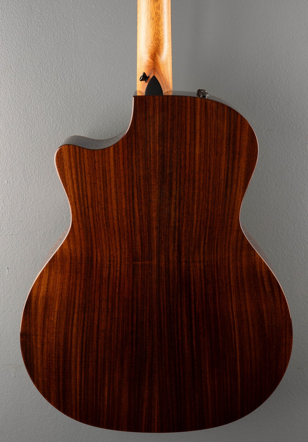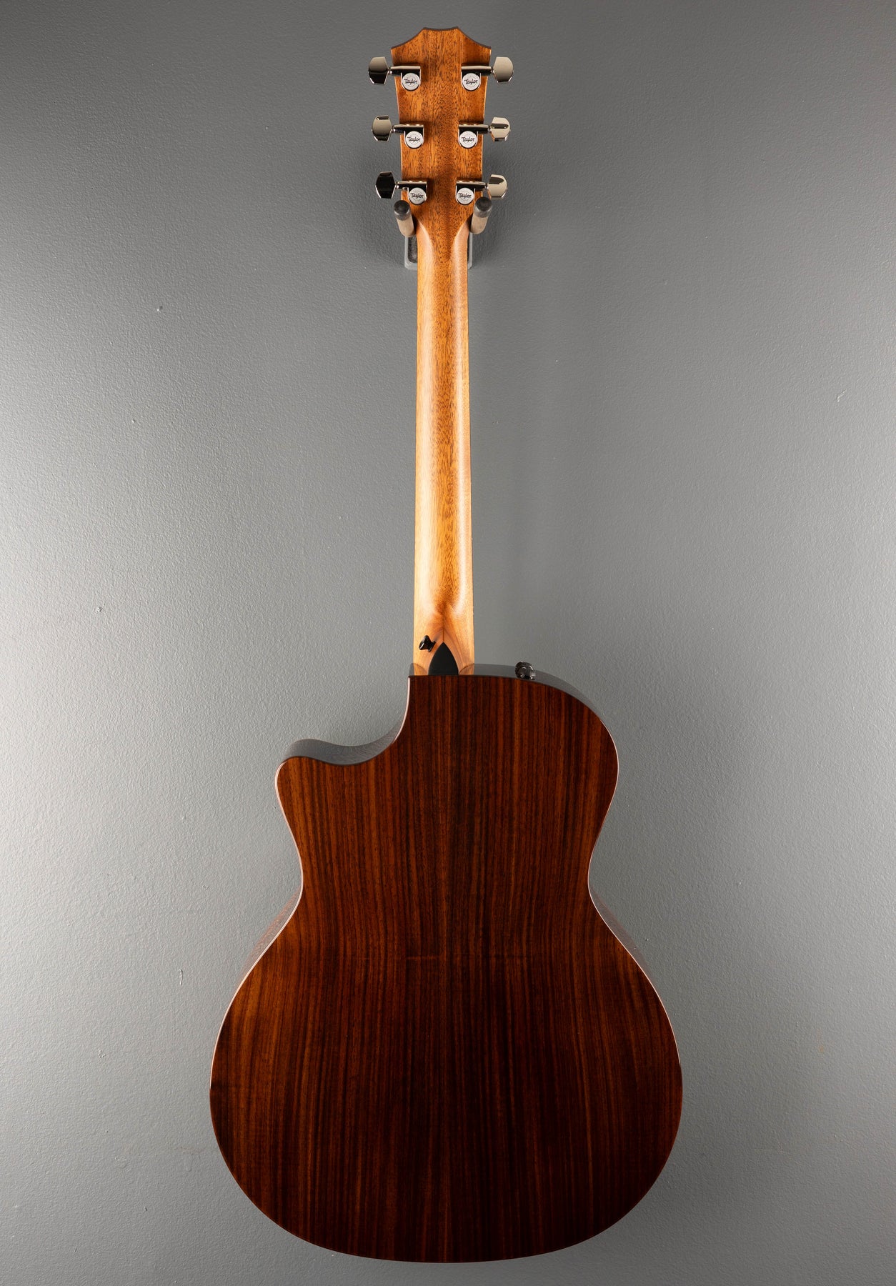 Excellent Condition, Natural Gloss Top and Body Finish, Grand Auditorium Body Shape with a Venetian Cutaway, Torrefied Spruce Top with a Three Ring Black Plastic Rosette and V-Class Bracing with Relief Rout, Indian Rosewood Back and Sides, Neo-Tropical Mahogany Neck with a .82"–.87" Thickness and a West African Crelicam Ebony Fingerboard with Faux Pearl 4mm Dot Inlays, 25.5" Scale Length, 1 11/16" Nut Width, Cast/Sealed Tuners, Expression 2 Pickup System, comes with Taylor gig bag.
