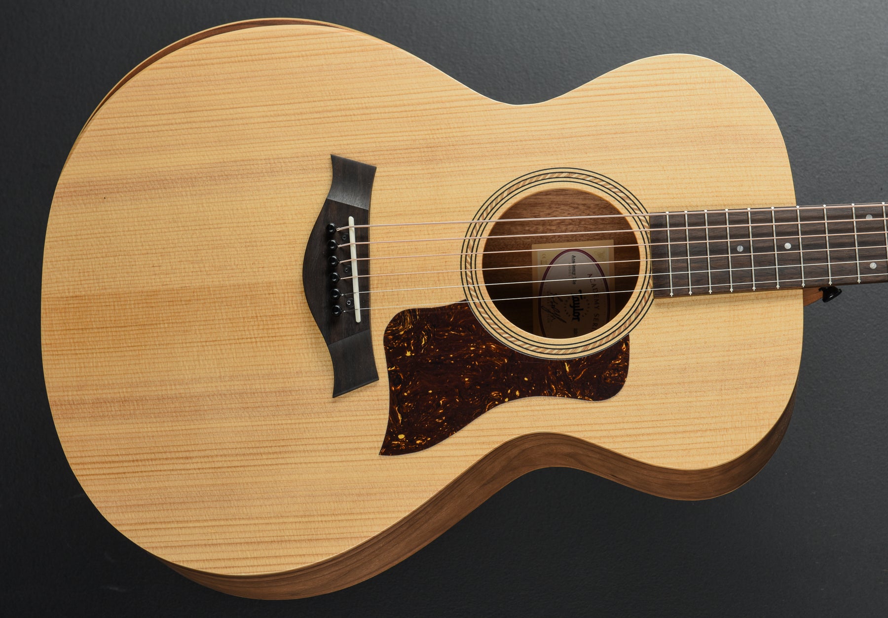 Natural, Grand Concert body shape with the armrest, Torrefied Sitka Spruce top, X Braced, Three Ring Baltic Birch Rosette, Academy Series pattern bracing, Laminated Walnut back and sides, West African Crelicam Ebony fingerboard with the 4mm Dot inlays on a Hard Rock Maple neck, 24 7/8th” scale length, 1 11/16th” nut width, ES-B pickup system, With gig bag. Very Good Condition.