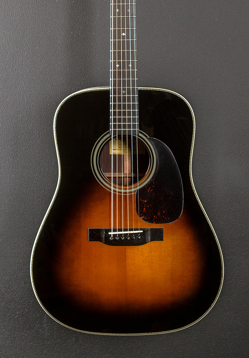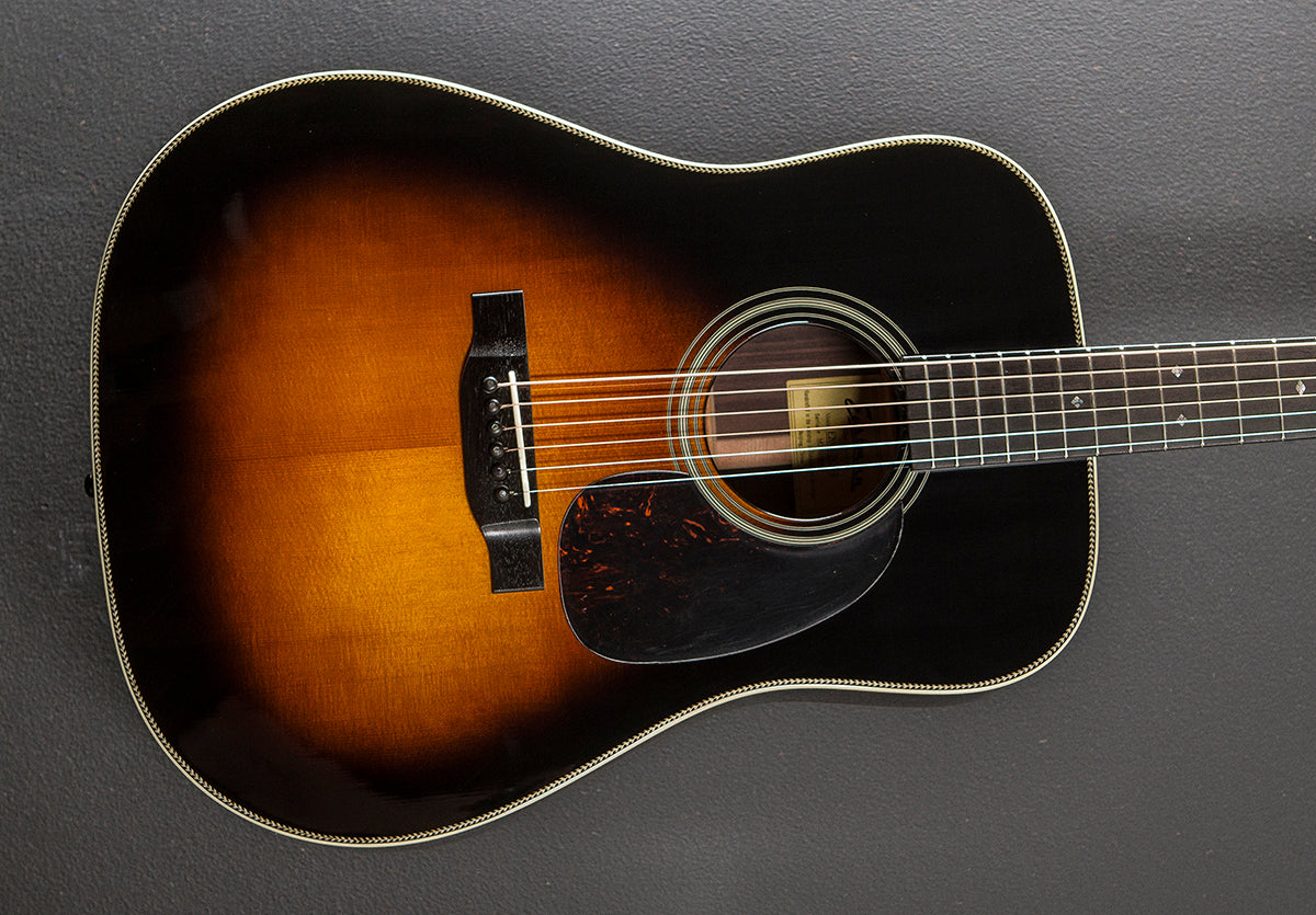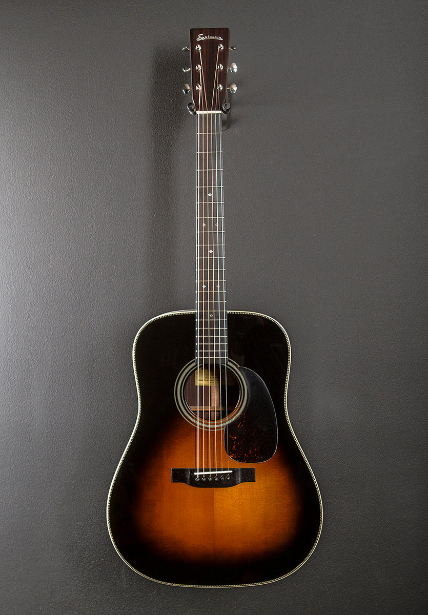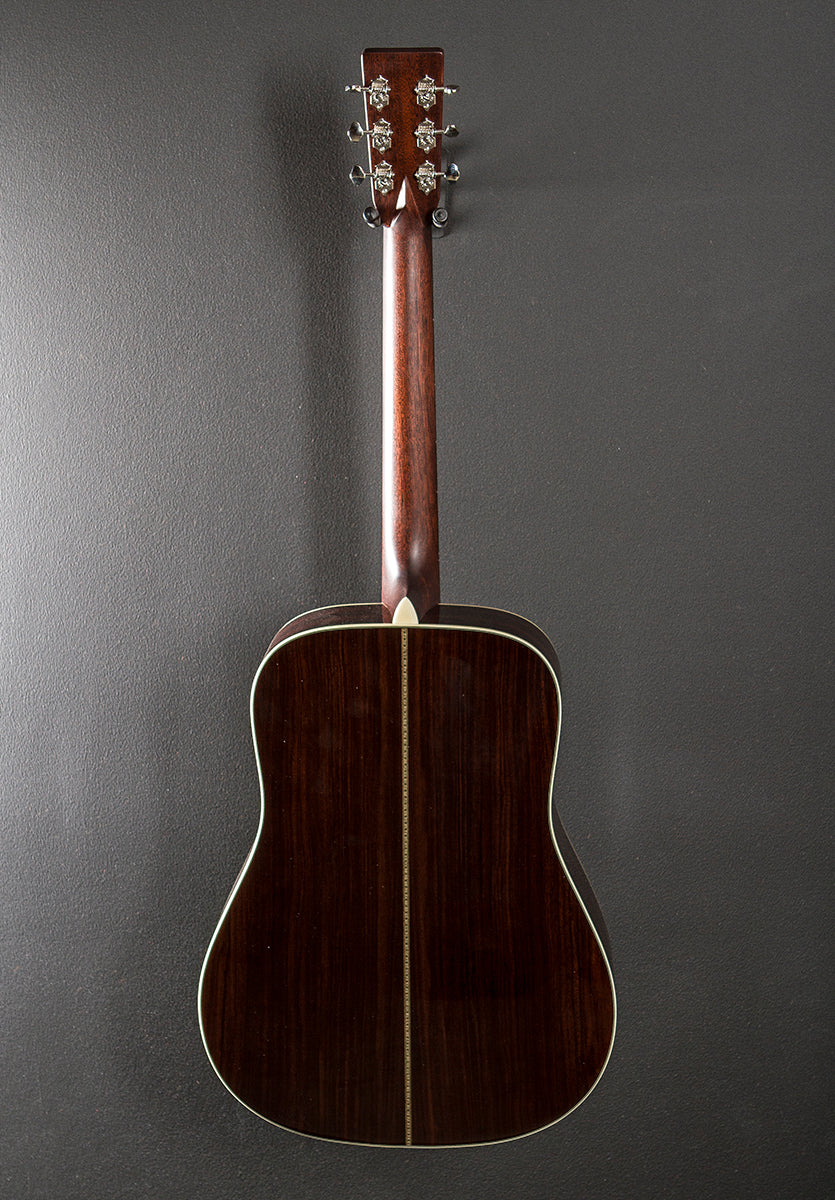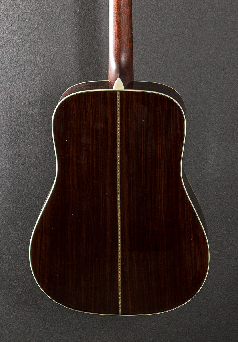 Sunburst, Gloss top and body finish, Dreadnought body shape, Solid thermo-cured Adirondack Spruce top, Classic Rosette, Hand carved scalloped X bracing, Solid Rosewood back and sides, Ivoroid binding with the Herringbone top inlay, 12” radius Ebony fingerboard with the Abalone Snowflake inlays on a traditional even C shaped Mahogany neck, 25.4” scale length, 1 3/4” nut width, Open gear tuners, The neck thickness is .84″ at the first and .92" at the 9th frets, With hardshell case, Very good