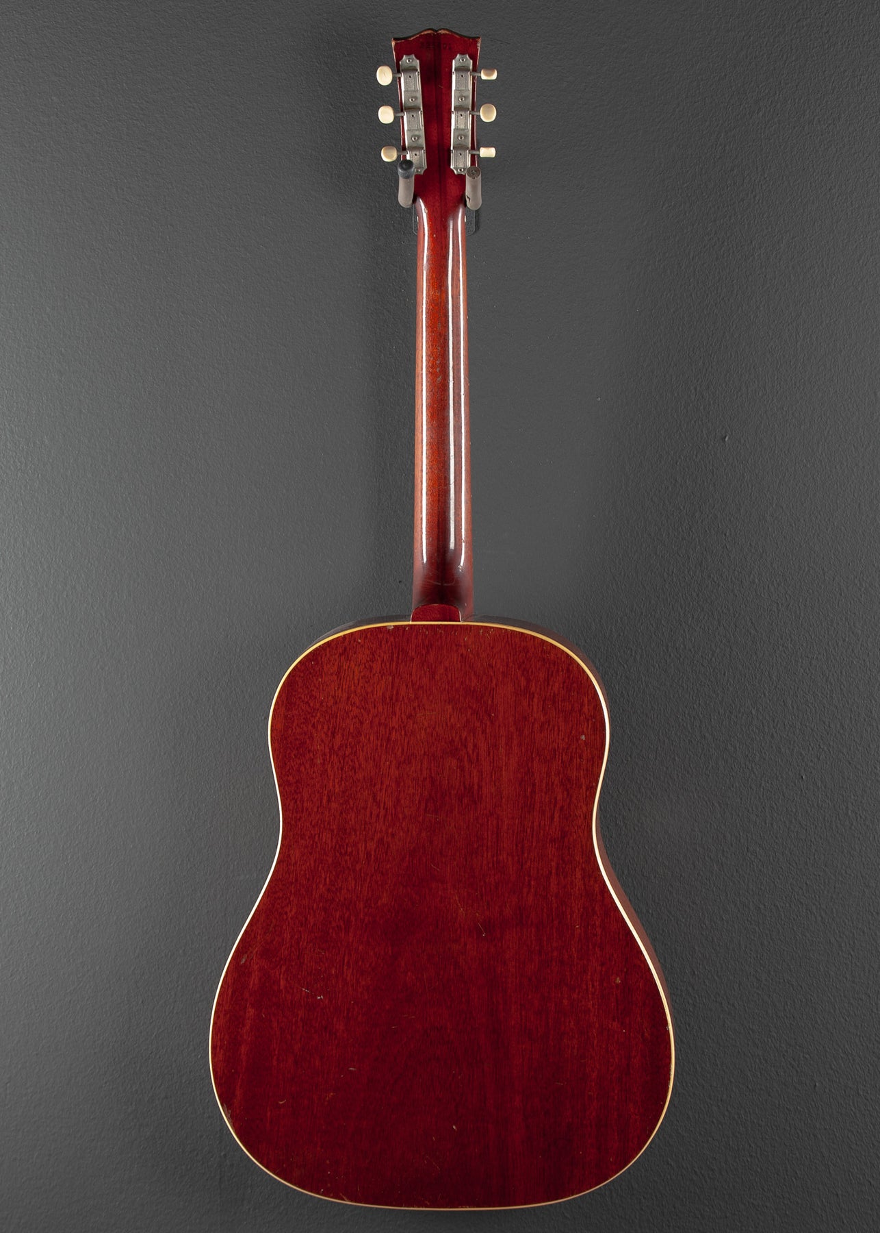 Cherry Sunburst, Round Shoulder body shape, Sitka Spruce top, Mahogany back and sides, Multi-ply top and single-ply back binding, Slim taper shaped Mahogany neck with a 12” radius Rosewood fingerboard and medium frets, 24.75″ scale length, 1 11/16th” nut width, Original strip tuners, non-original hardshell case, Very good