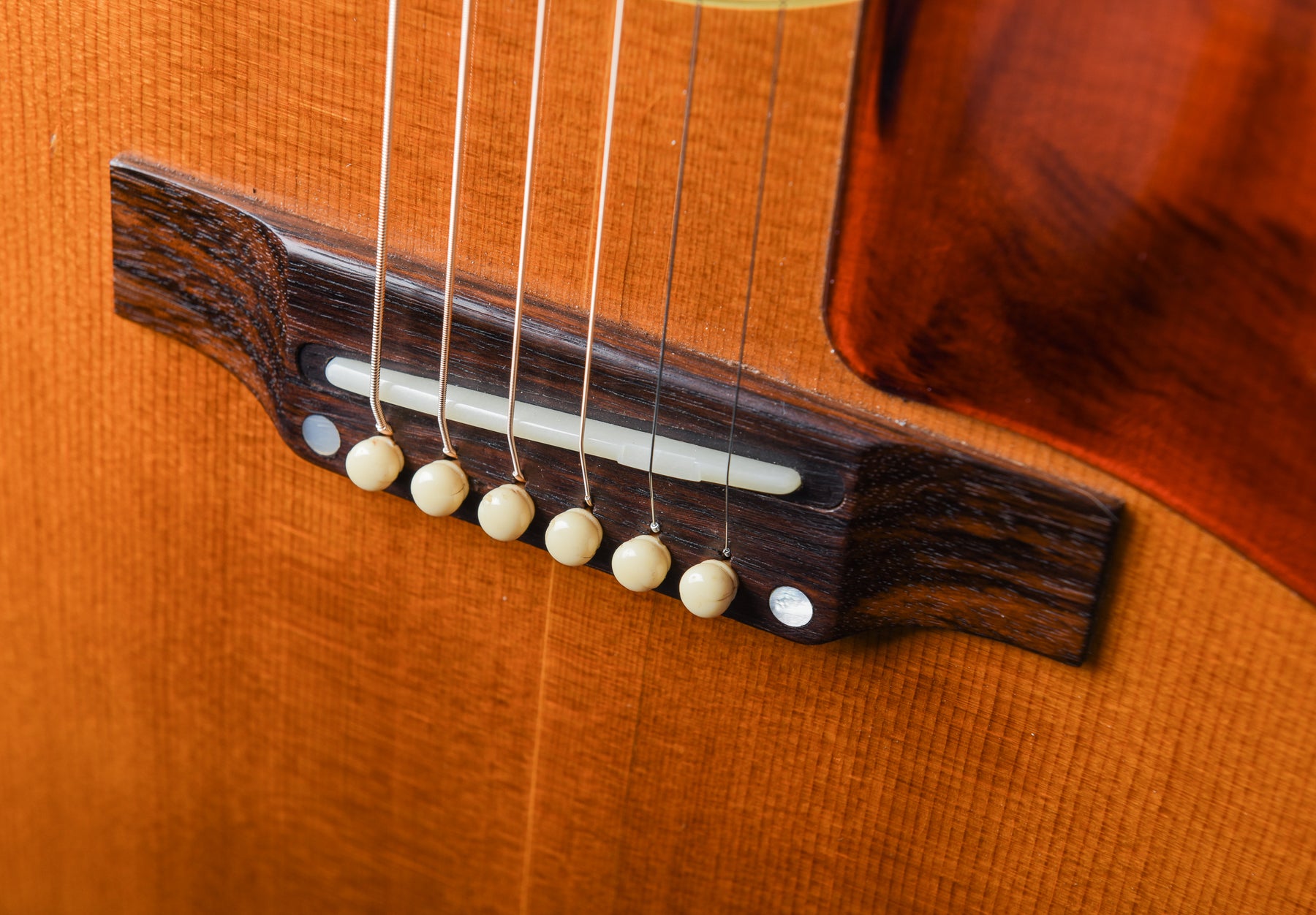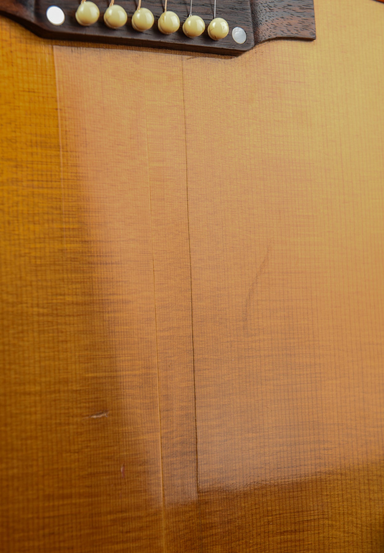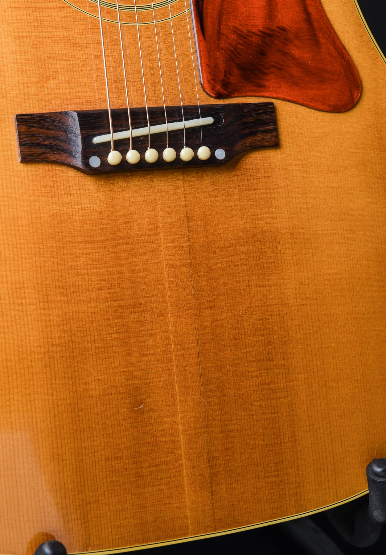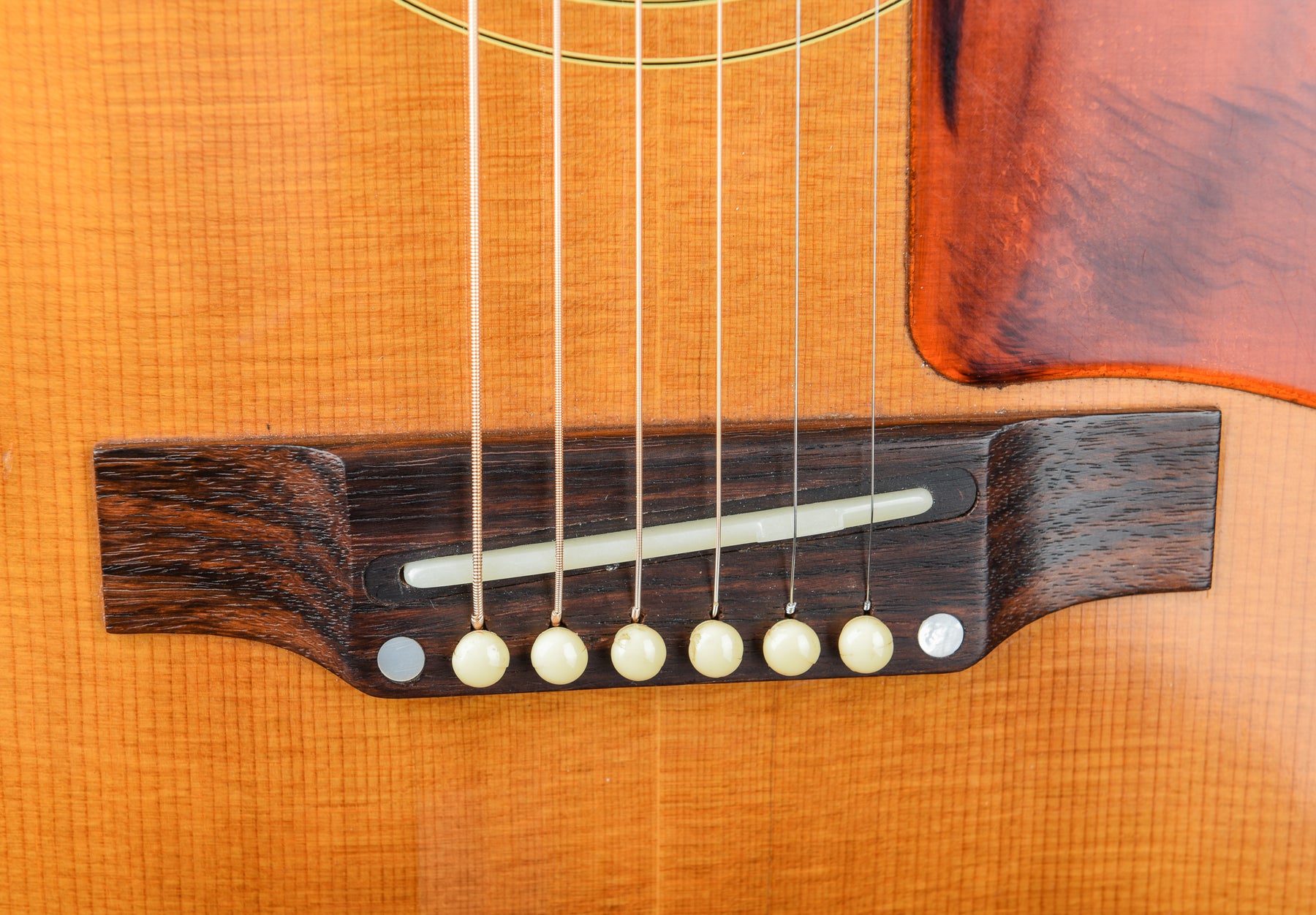 Please Note: The original adjustable rosewood saddle (still in the case) has been replaced with a traditional drop-in design. Our shop did a refret, repaired an interior brace and installed a new bone nut and new bone saddle. In addition, three top cracks have been repaired (not by our shop) and are stable. Please refer to the photos provided.