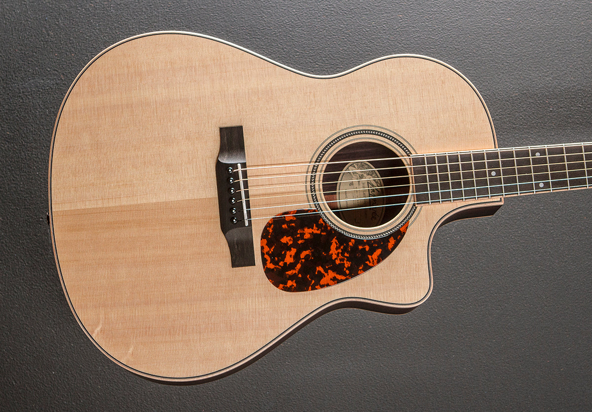Natural, Satin finish, Sitka Spruce top, X bracing, Herringbone Rosette, Indian Rosewood back and sides, Maple binding with the multi-stripe top inlay, 12” radius Ebony fingerboard with the Dot inlays on a Mahogany neck, 25.5” scale length, 1 3/4” nut width, Cast/sealed tuners, With the L.R. Baggs Stage Pro Element pickup system hardshell case, Excellent