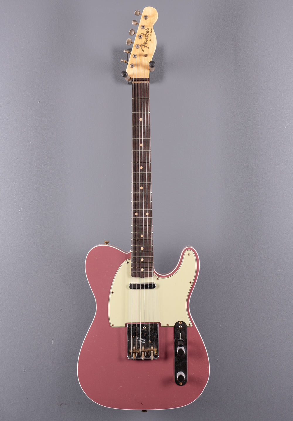 Burgundy Mist Metallic, Double bound Alder body, Mid 60′s Oval C shaped Maple neck with a 9.5″ radius AAA Rosewood fingerboard and medium jumbo frets, 25.5″ scale length, 1.650” nut width, Handwound ’58 Relic Tele bridge and neck pickups with the modern wiring, The neck thickness is .79″ at the first and .93″ at the 12th frets, 7.4 pounds, With Fender Custom Shop hardshell case.