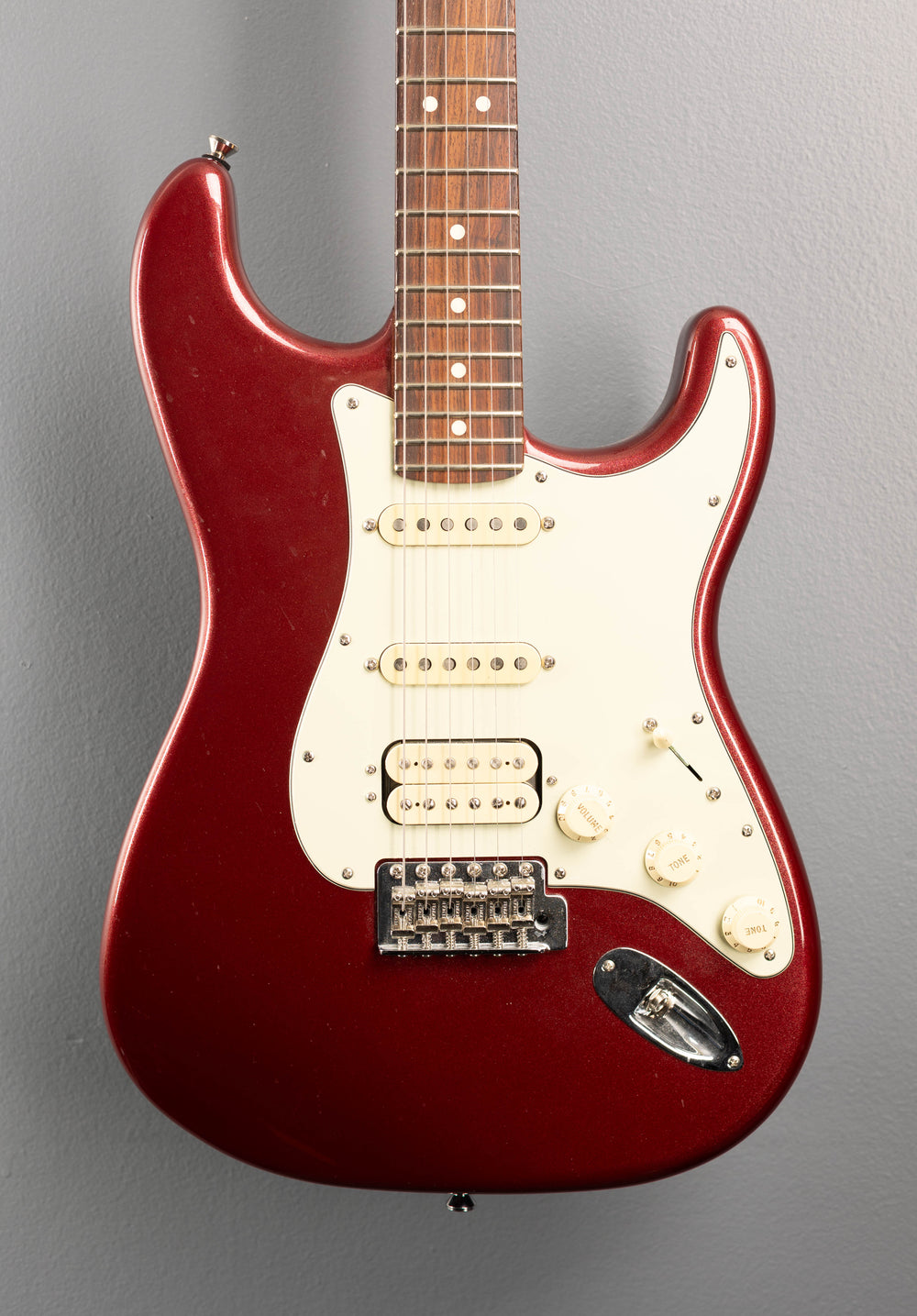 Very Good Condition, Aubergine, Gloss polyurethane body finish, Alder body, Modern C-shaped Maple neck with a 9.5” radius Rosewood fingerboard and jumbo frets, 25.5″ scale length, 1.685″ nut width, Double Tap Humbucking and Yosemite single coil Strat pickups, 5-way switching with the master volume, tone 1 (neck/middle pickups), tone 2 (bridge pickup Greasebucket tone circuit) controls, The tone 2 push/pull switch for coil-split, Six saddle vintage style synchronized tremolo and Fender Classic Gear tuners, 7.7 pounds, With gig bag.