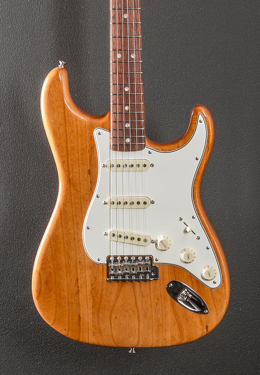 Aged Natural, Gloss polyurethane body and neck finish, Ash body, 1973 C shaped Maple neck with a 7.25" radius Rosewood fingerboard and vintage tall frets, 25.5" scale length, 1 5/8th" nut width, Fender Pure Vintage '73 single coil Strat pickups, 5-way switching with the master volume, tone 1. (neck/middle pickups) and tone 2. (bridge pickup) controls, Pure Vintage synchronized tremolo with the bent steel saddles, Pure Vintage Fender F stamped tuners, The neck thickness is .83″ at the first and .91″ at the 12th frets, 7.8 pounds, With the Fender hardshell case, Excellent