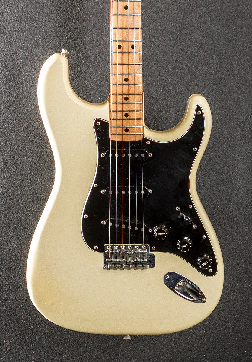 Olympic White, The serial number and the body sticker read "S982886" but the pots date to 1981, Appears to be an Ash body, Late 70's small U shaped Maple neck with a 7.25" radius Maple fingerboard and the original low profile frets, 25.5" scale length, 1 5/8th" nut width, Original Fender single coil Strat pickups, 5-way switching with the volume/tone/tone controls, Original tremolo and F stamped tuners, The neck thickness is .91″ at the first and .96″ at the 12th frets, 10.0 pounds, With the Fender hardshell case, Very good