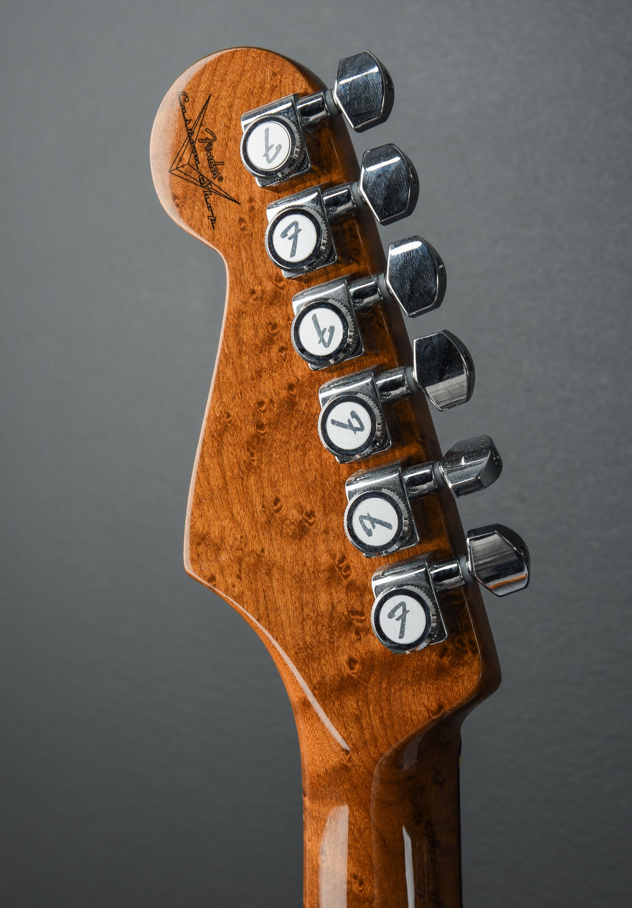 Aged Amber Natural, Gloss nitrocellulose lacquer finish, Ash body, 1960 oval C shaped roasted 2A Birdseye Maple neck, 9.5” to 12" compound radius Rosewood fingerboard with the mother of pearl dot inlays and narrow tall frets, 25.5” scale length, 1 11/16th” nut width, Handwound Fat '64 Strat pickups, 5-way switching with the volume/tone/tone controls, American Vintage tremolo with the bent steel saddles, Fender locking tuners, The neck thickness is .77″ at the first and .92″ at the 12th frets, 8.2 pounds, With hardshell case