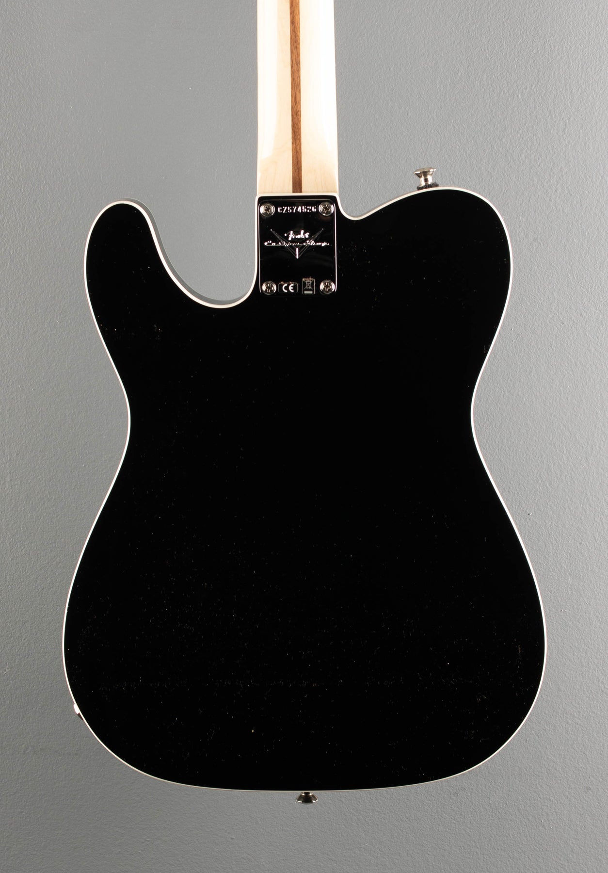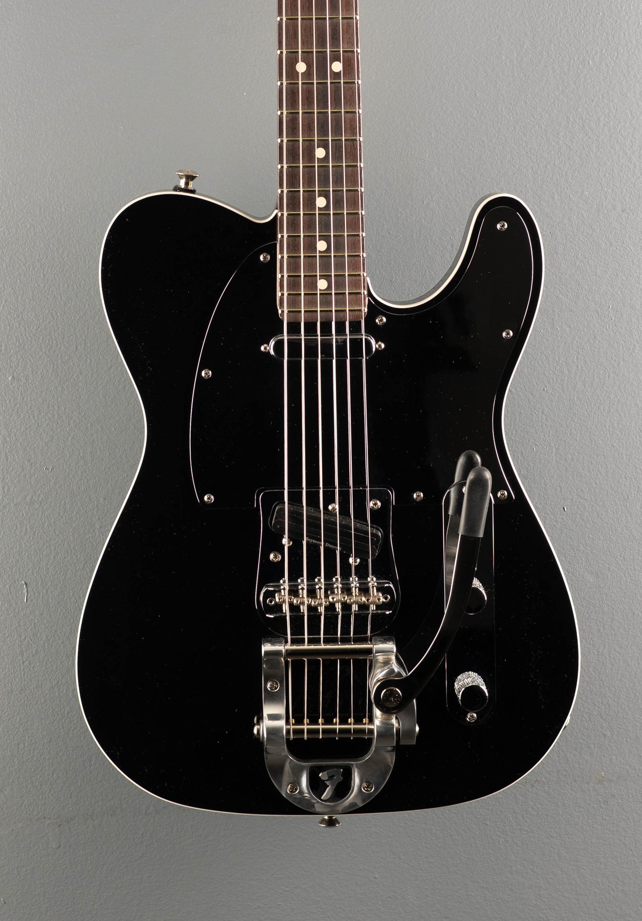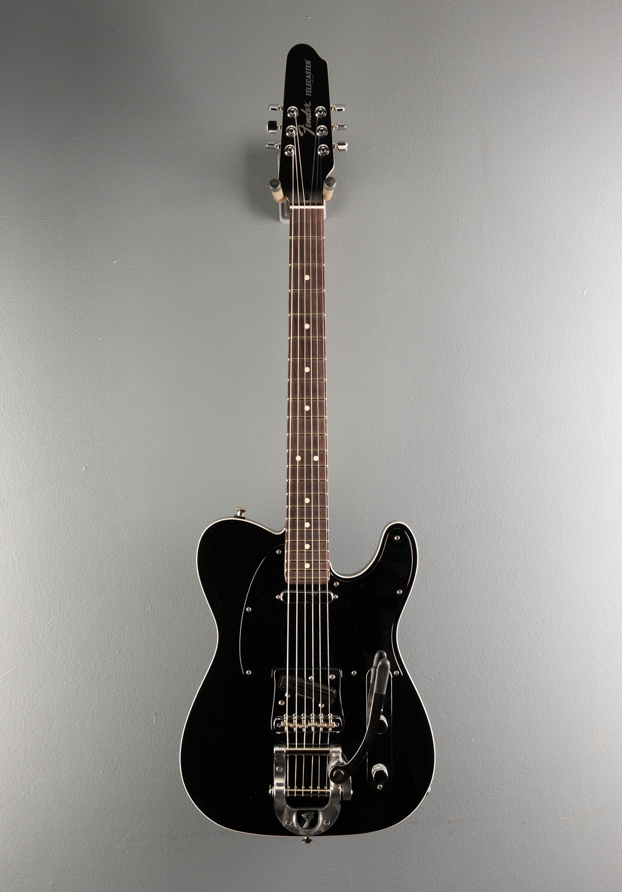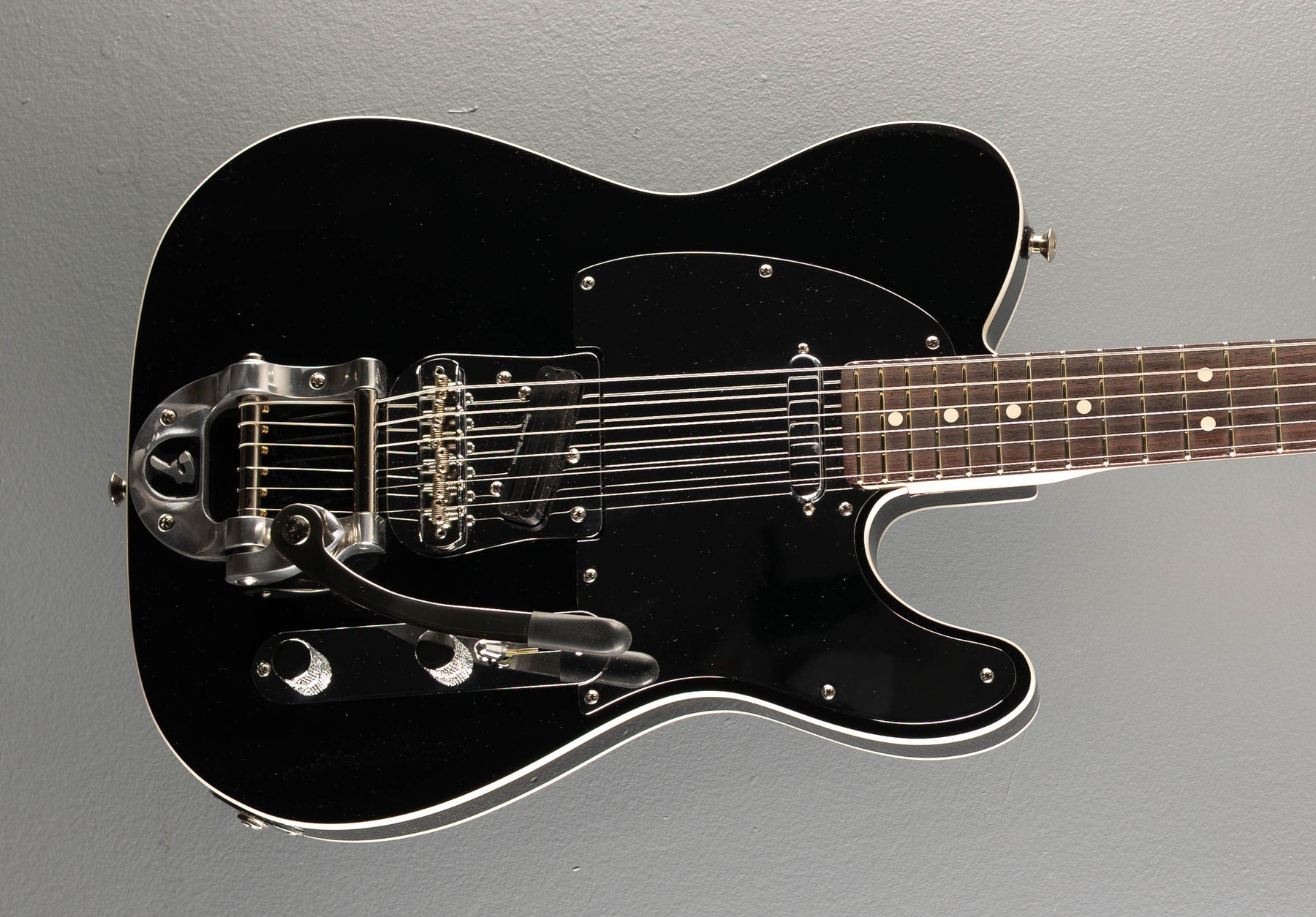 Excellent Condition, Black, NOS urethane body and neck finish, Double bound Ash body, Modern C shaped Maple neck with a 12" radius Rosewood fingerboard and medium jumbo frets, 25.5" scale length, 1 11/16th" nut width, Seymour Duncan STHR-1B Hot Rail bridge and Fender Twisted Tele neck pickups, 3-way switching with the master volume and tone controls, Vintage style adjustable bridge with the threaded steel saddles, Bigsby B-5 vibrato, Locking tuners, The neck thickness is .84″ at the first and .95″ at the 12th frets, 8.8 pounds, With the certificate and Fender hardshell case.