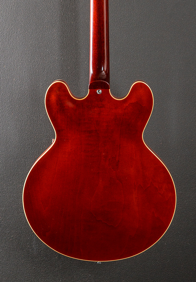 Sixties Cherry, VOS nitrocellulose lacquer finish, Semi-hollow 3-ply Maple/Poplar/Maple body with a solid Maple centerblock, Hide glue construction and long tenon neck joint, 60's slim taper C shaped Mahogany neck, Bound 12” radius Indian Rosewood fingerboard with the pearloid dot inlays and medium jumbo frets, 24.75″ scale length, 1.69" nut width, Unpotted Custombucker Alnico III bridge and neck pickups, 3-way toggle switching with the volume and tone controls for each pickup, No wire ABR-1 tune-o-matic bridge and lightweight aluminum stop tailpiece, Kluson single line/double ring tuners, 7.6 pounds, With hardshell case